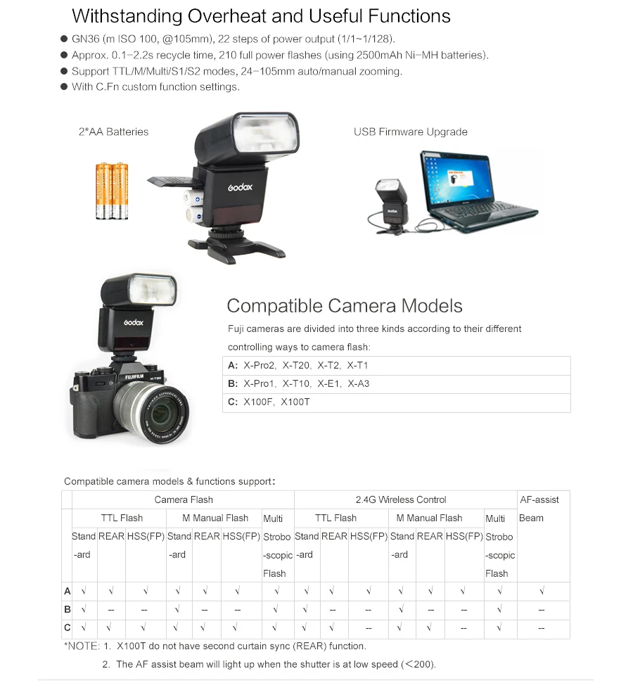 Godox TT350C TT350N TT350S TT350F TT350F TT350O Flash 2.4G HSS TTL Wireless Spee