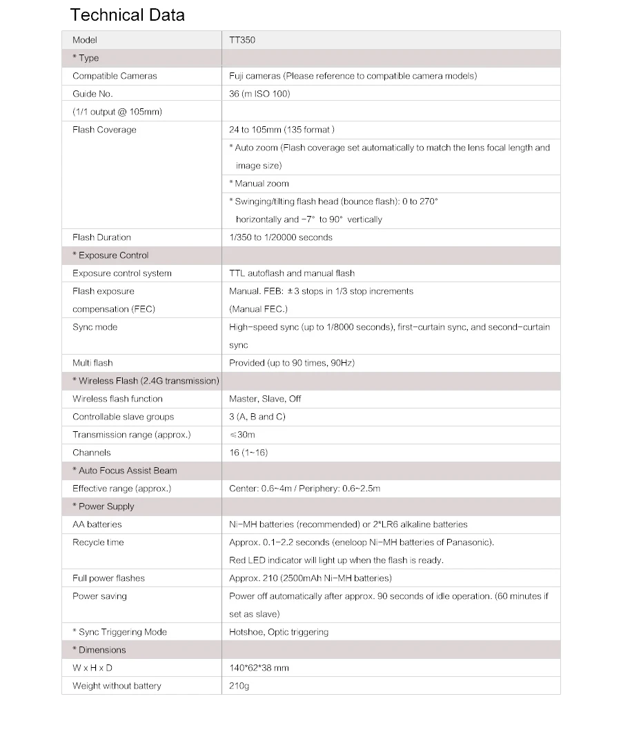 1 * TT350S/C/N/F/O Flash unit