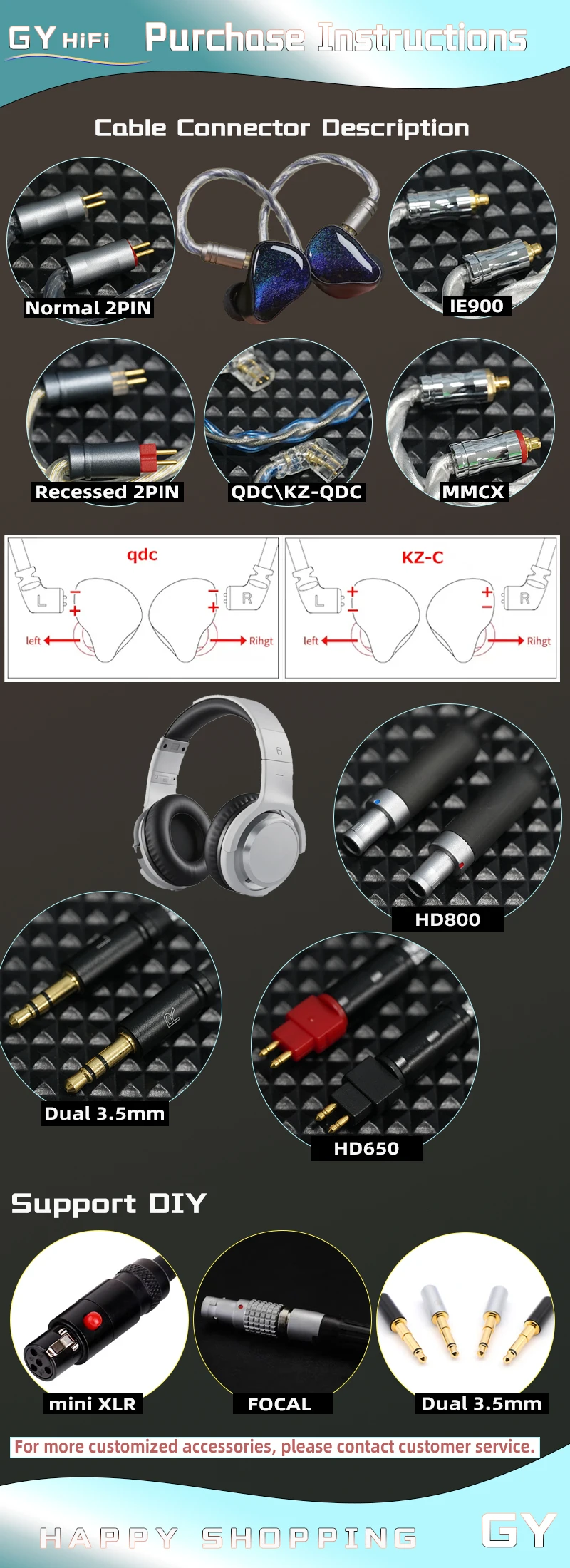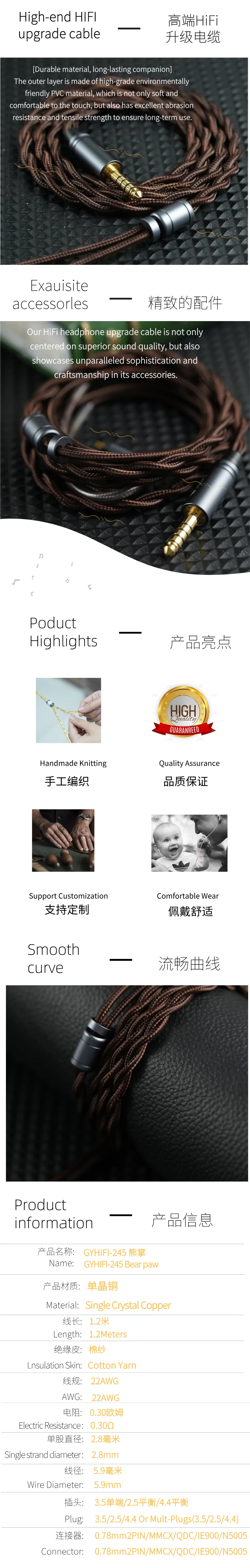 GY Hifi-245 Bear'S Paw 2-Core-Core Upgrade IEM Cable 3.5/2.5/4.4 Mm Mmcx/2Pin/Ie