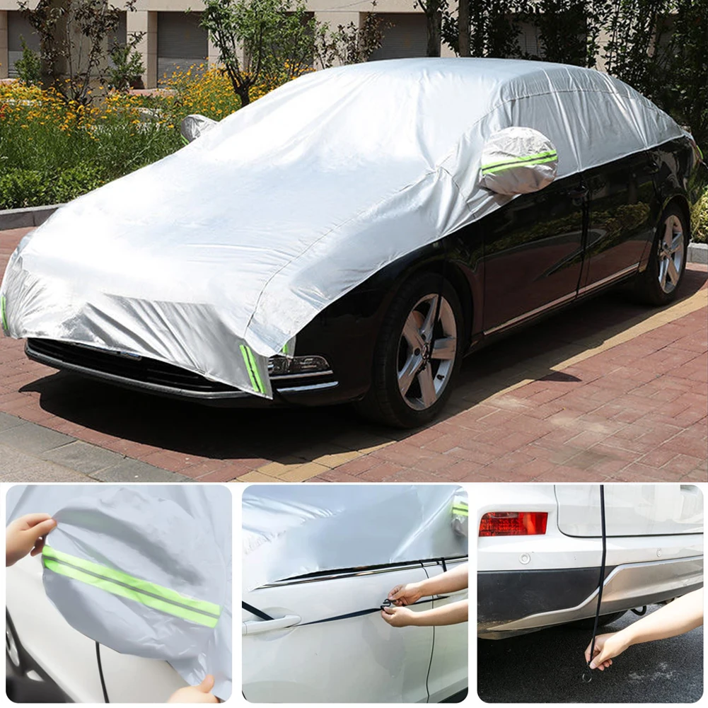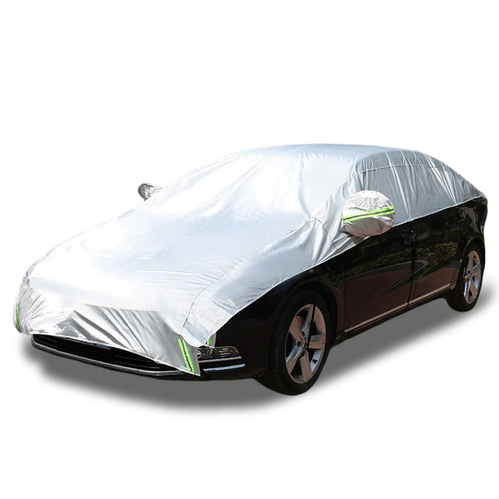 Half Car Cover Rainproof Outdoor Reflection Film All Weather Car Body Cover Exterior Car Protector Cover for Sedan Hatchback SUV