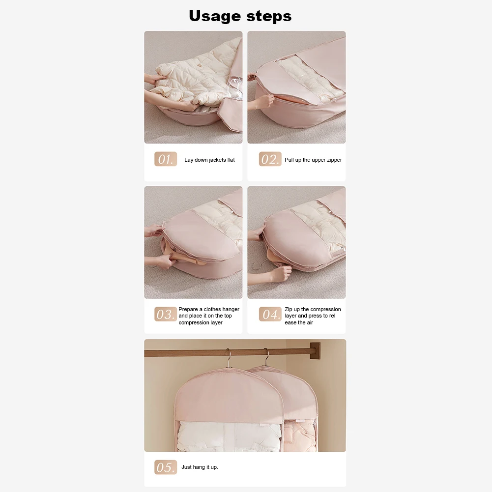 Space Saving Hanging Garment Bag with Self Compression Zipper Space Saver Closet Organizer Dust Cover Clothes Bag for Clothes Coats Jackets Features: 1.Protect Your Clothes: Unlike other storage bags, our space saving hanging garment bag maintains the fluffiness of down coats, preventing wrinkles and deformation, ensuring cleanliness even in cold seasons. It offers a clean and separate space for your clothes, keeping them in perfect condition year-round. 2.Premium Upgraded Fabric: The space saver closet organizer is made of thick waterproof PEVA and polyester fiber materials, offering durability. The transparent design allows easy viewing of clothes within each bag; effectively protects against wrinkles, dust, pet hair, and humidity, providing reliable garment protection. 3.Maximize Closet Space: The dust cover clothes bag features a self-compressing zipper. A single hanging vacuum bag can store up to 5 pieces of clothing, including winter jackets, suits, and coats, reducing their original size and freeing up more space in your closet. 4.Efficient & Easy to Use: Extremely space-saving self-compressing hanging storage bag requires no vacuum cleaner - just place your clothes inside, zip it up, and compression is done. The top has holes to fit various hangers. 5.Reliable Protection: This coat storage bag provides an ideal solution for long-term clothing protection, maintaining your garments' quality and freshness, so you always have clean clothes ready to wear. Specification: Origin: Mainland China Material: Satin Storage size: S 90*58*15 M 110*58*15 L 130*58*15 Note: 1 x Garment Bag ![]() ![]() ![]() ![]() ![]() ![]() ![]() ![]() ![]() ![]() ![]() |