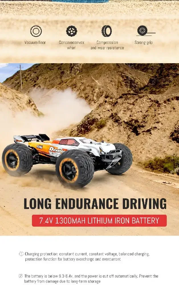 Brushless motor power, super battery power: 7.4V, 1300Mah Li-ion battery