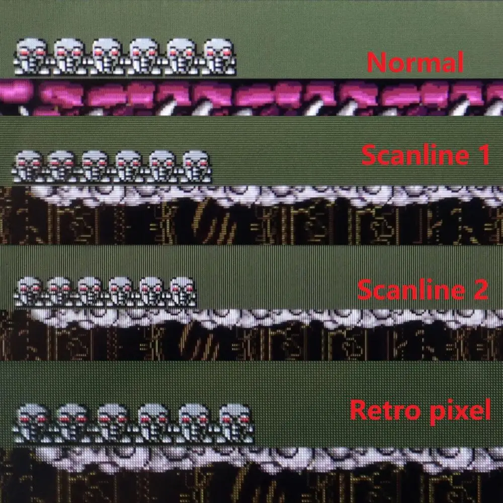 5. Retro pixel Effects: Normal, Retro pixel, Scanline 1 and Scanline 2.