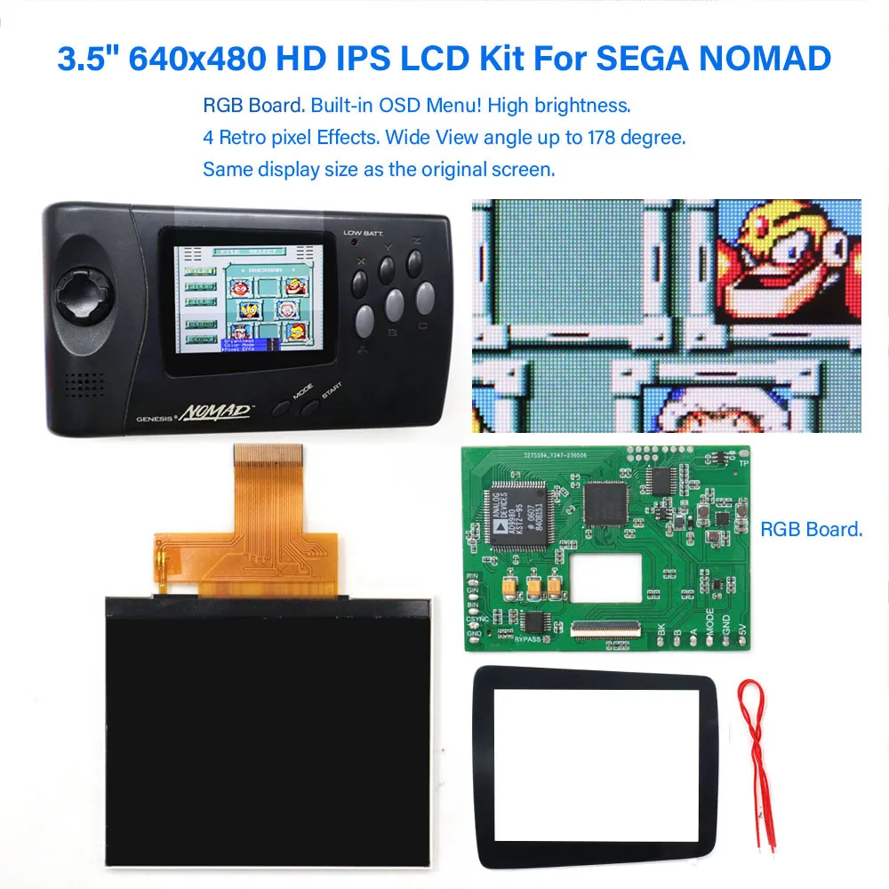 HD Backlight OSD Menu Hight Light 3.5" 640x480 IPS LCD Panel RGB Board Mod for Sega Nomad Console