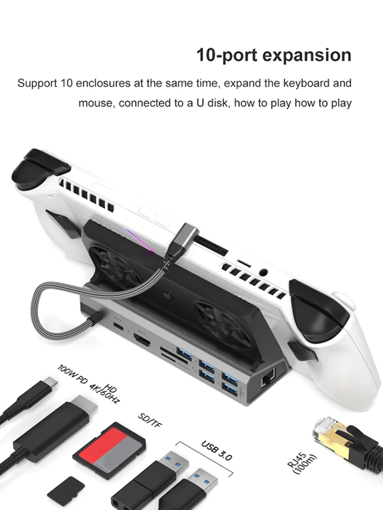 Dock Console Hub 4K 60Hz USB C Docking Station Gigabit Ethernet 1000Mbps Dock Stand Type C USB 3.0 2.0 PD 100W for ROG Ally Game