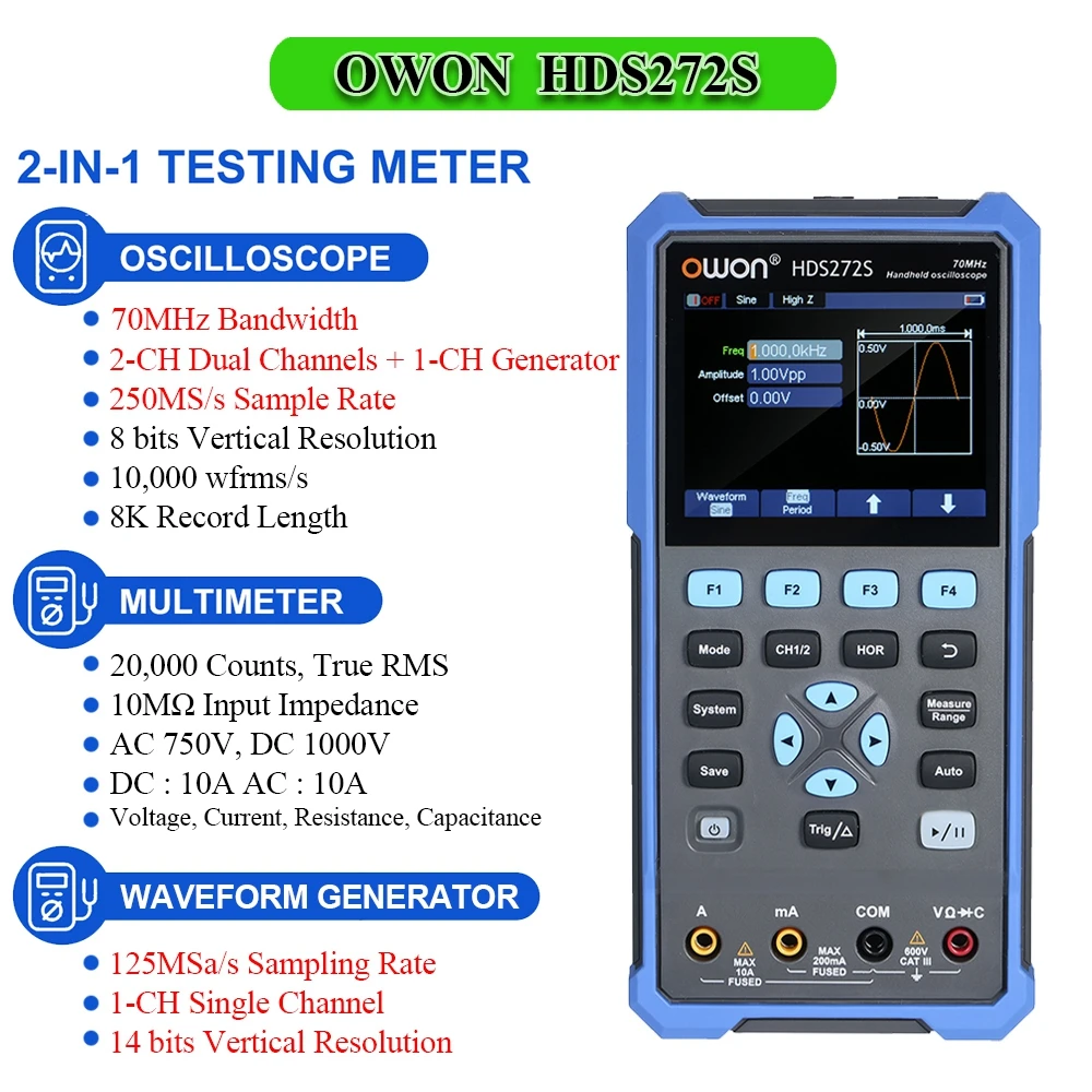 The 2-in-1 versatile unit combines the function of oscilloscope and multimeter in one.