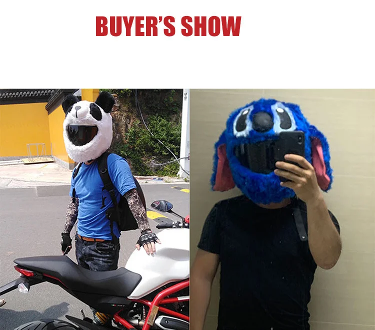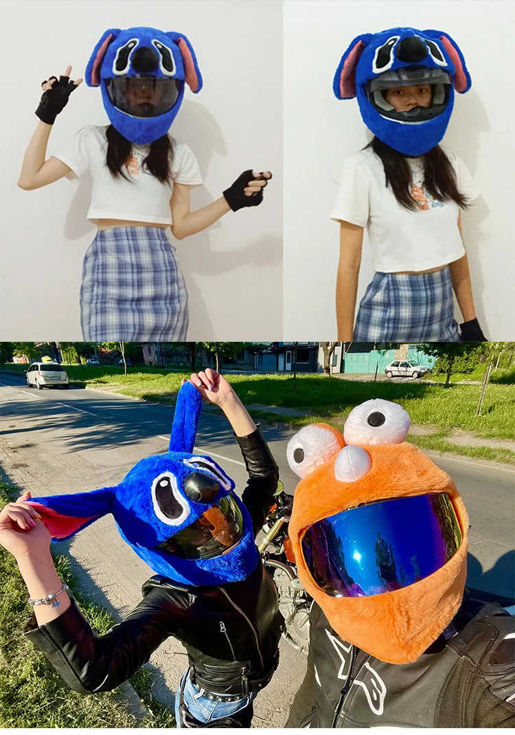 Helmet Protection Headgear Cover Cartoon Fluffy Plush Set for Motorcycle Full-Fa