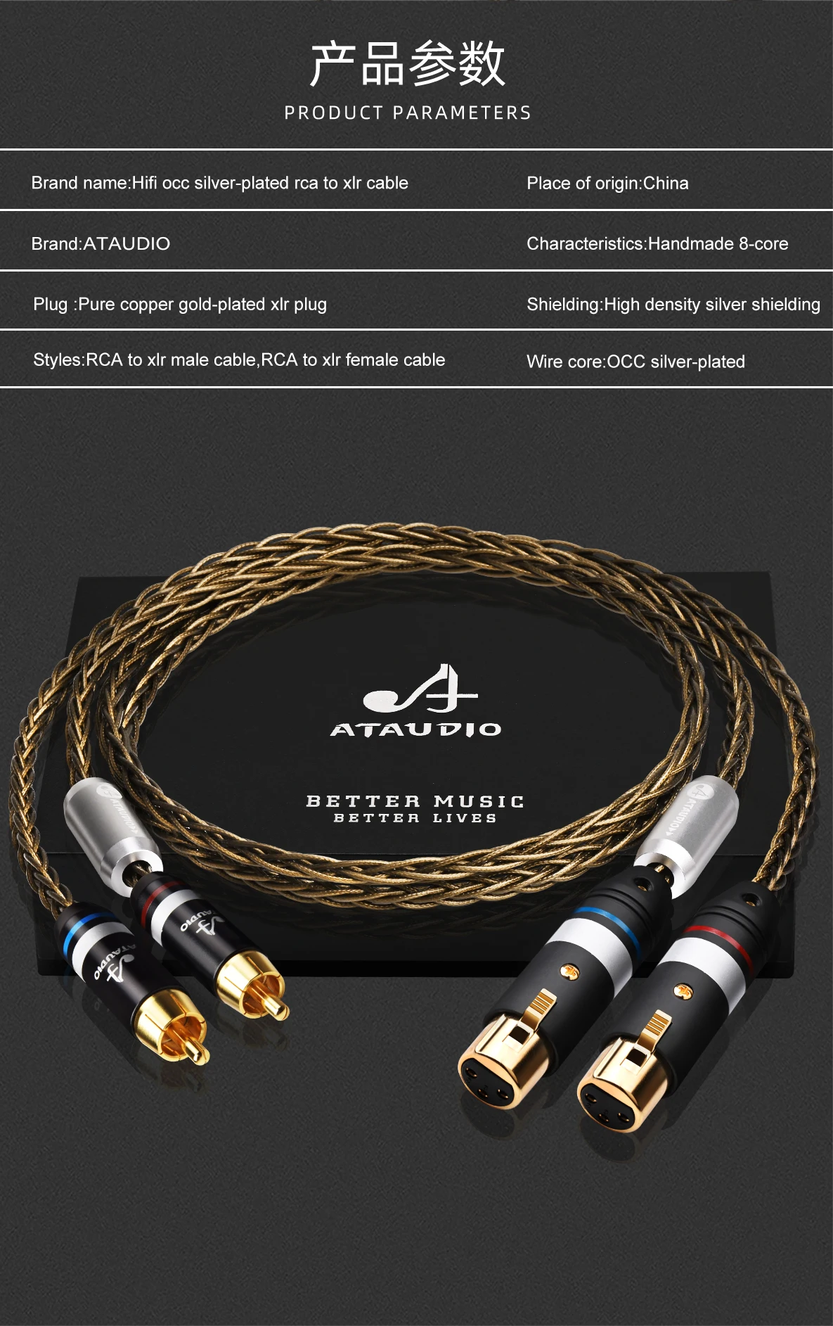 Hifi Rcat to XLR for AMP Audio Cable Hi-End OCC Siver-Plated 3Pin XLR Female to
