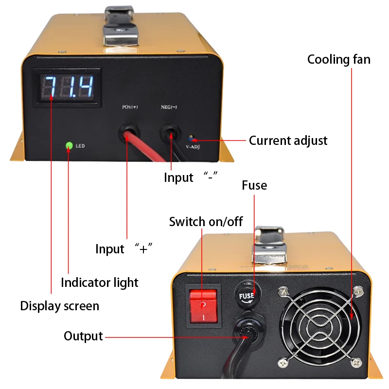 - Cooling: chargers use of forced air cooling system. Under dustless and ventilated conditions, the full load temperature rise not exceeding 40.