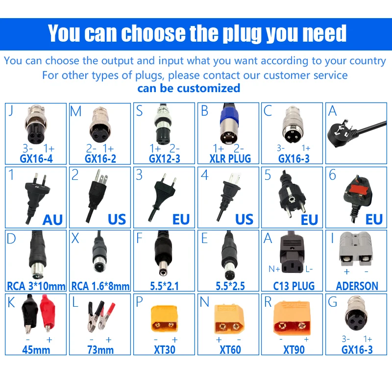 - Please Leave Clear Words of The Input AC Plug And Output DC Plug,Like'AC:Number 5, DC:G',Especial 'E' And 'F',Otherwise We will send anderson plug,Thank You!!!