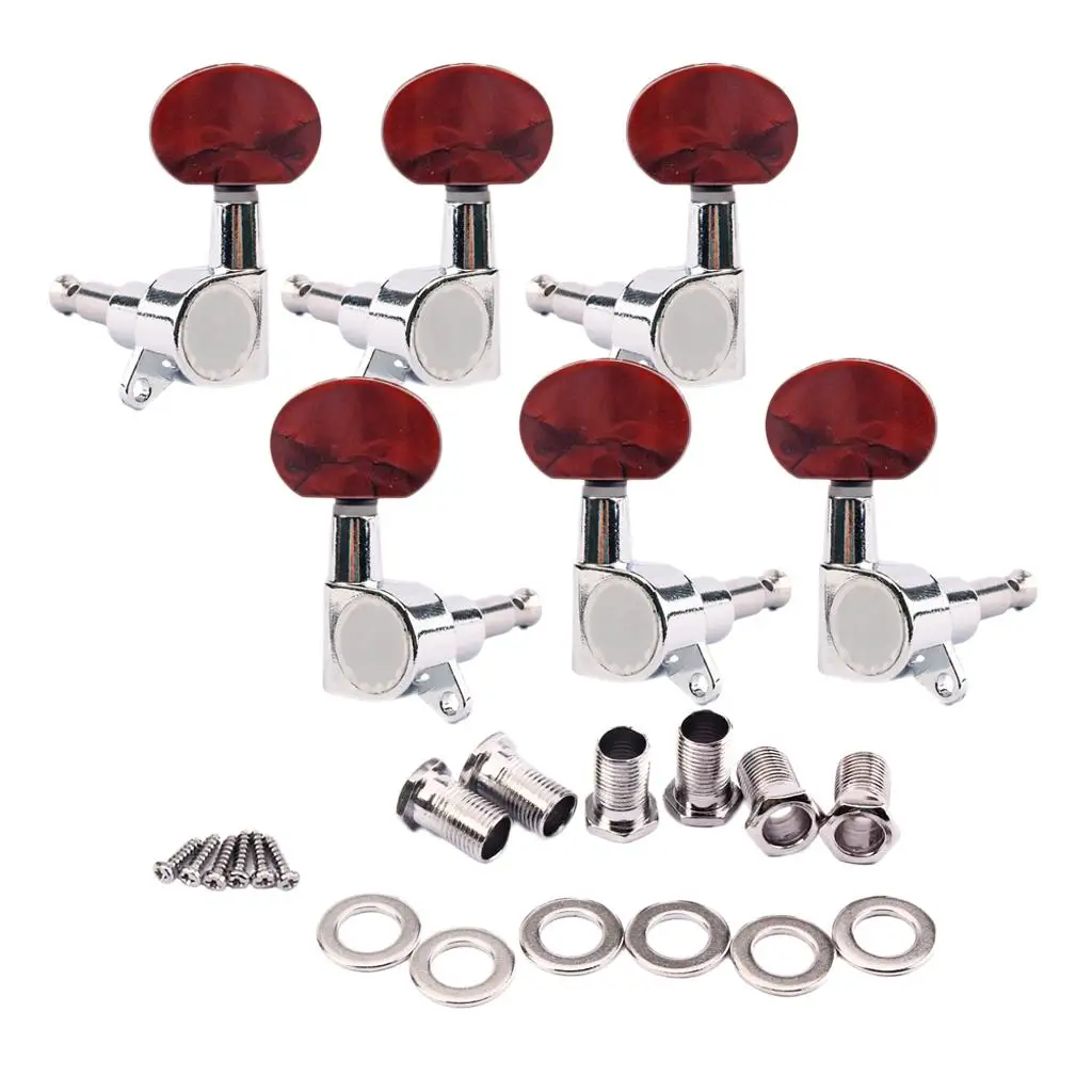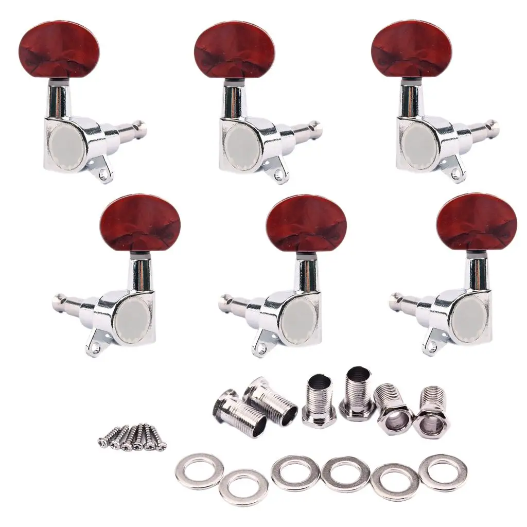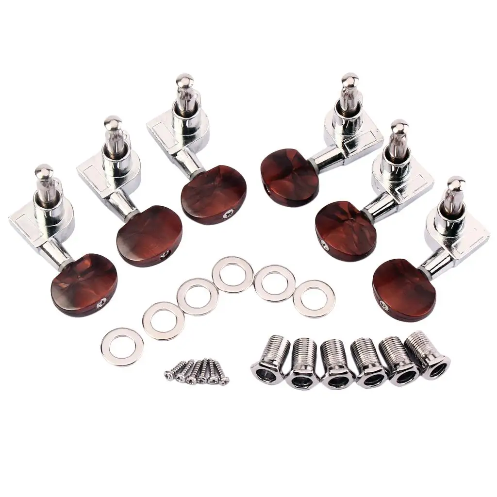 3L 3R Chrome Enclosed Tuning Pegs Machine Head with Amber Plastic Buttons for Acoustic Guitar Electric Guitar