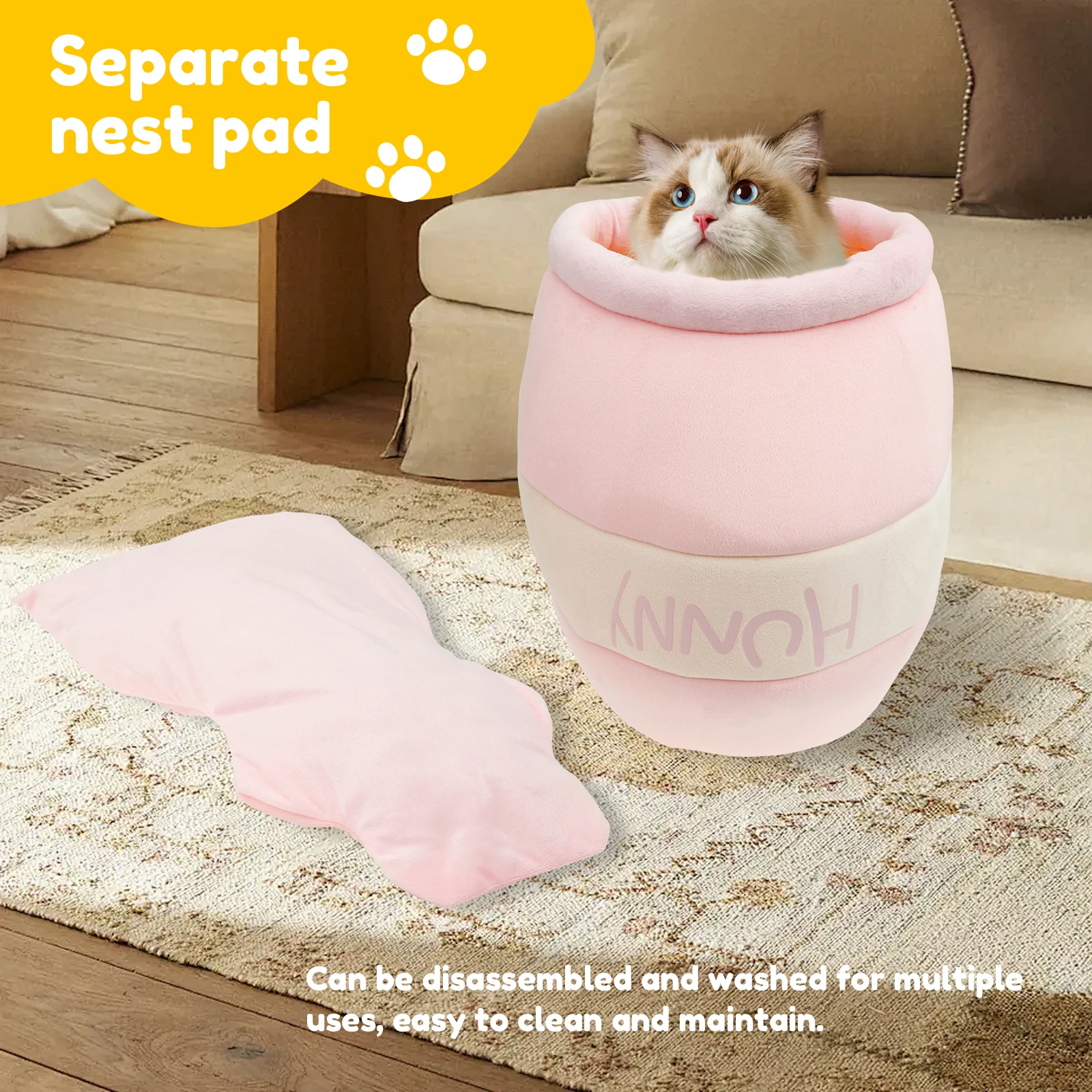 Honey Pot Cat Bed House Plush Cushion Sleep Resilience Detachable Four Seasons U