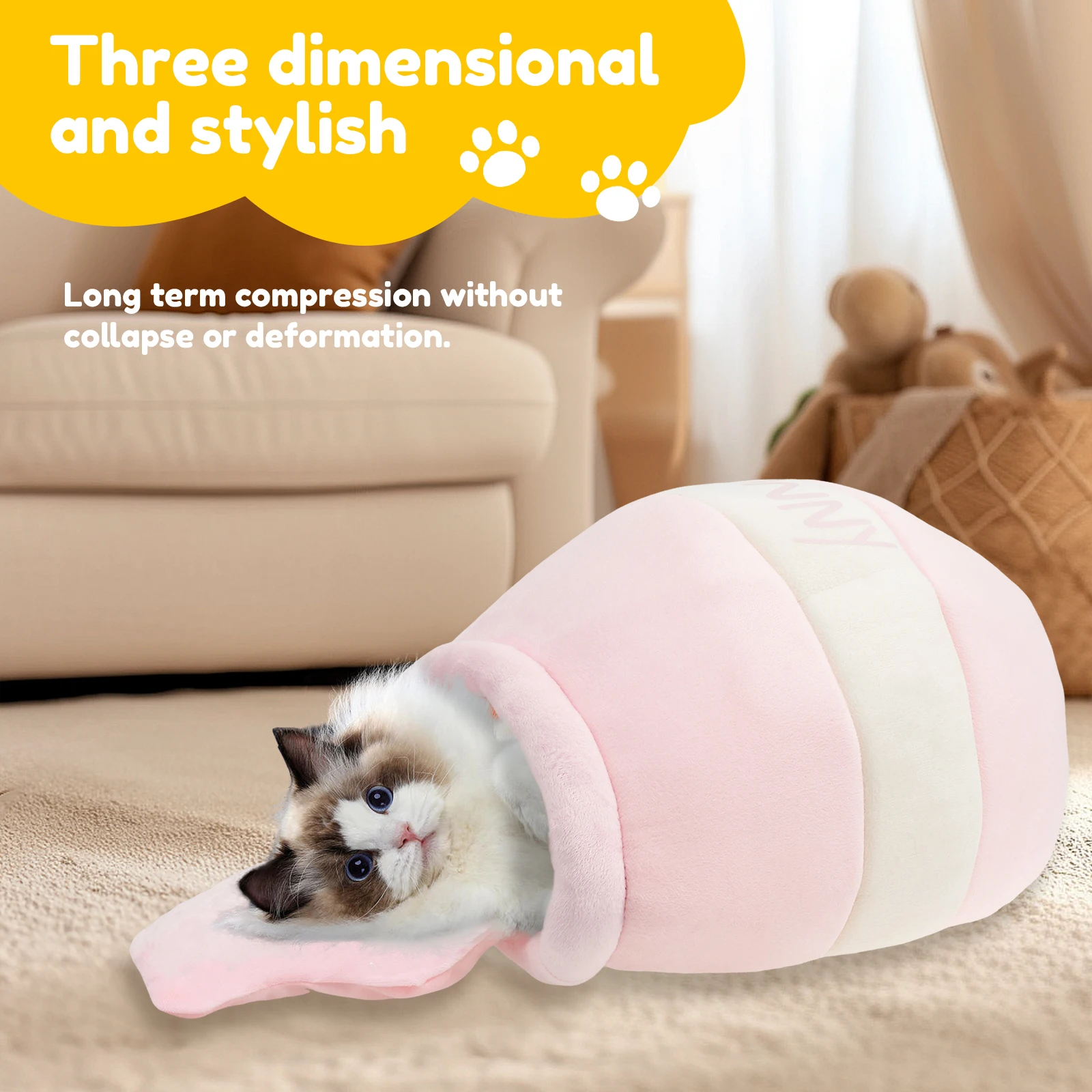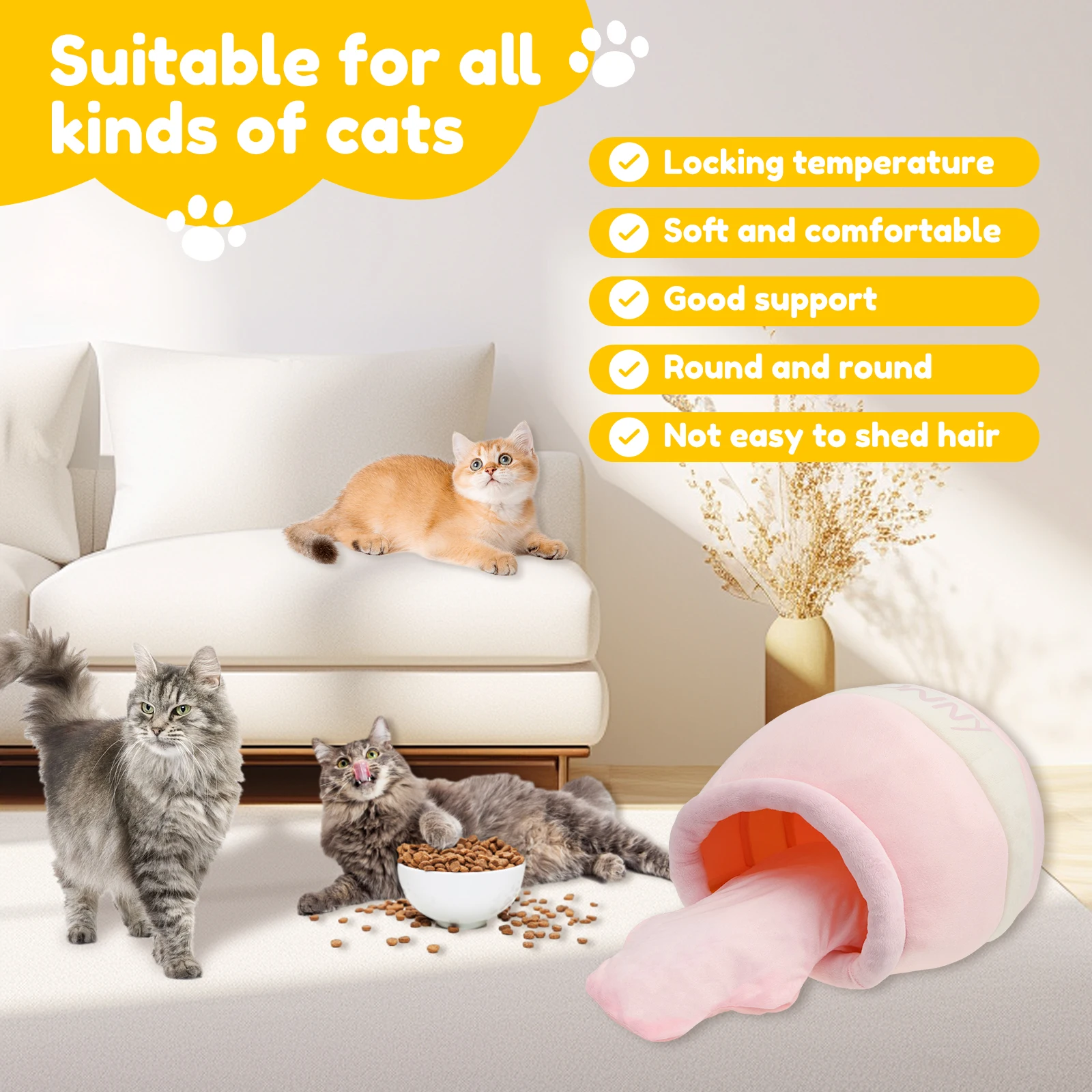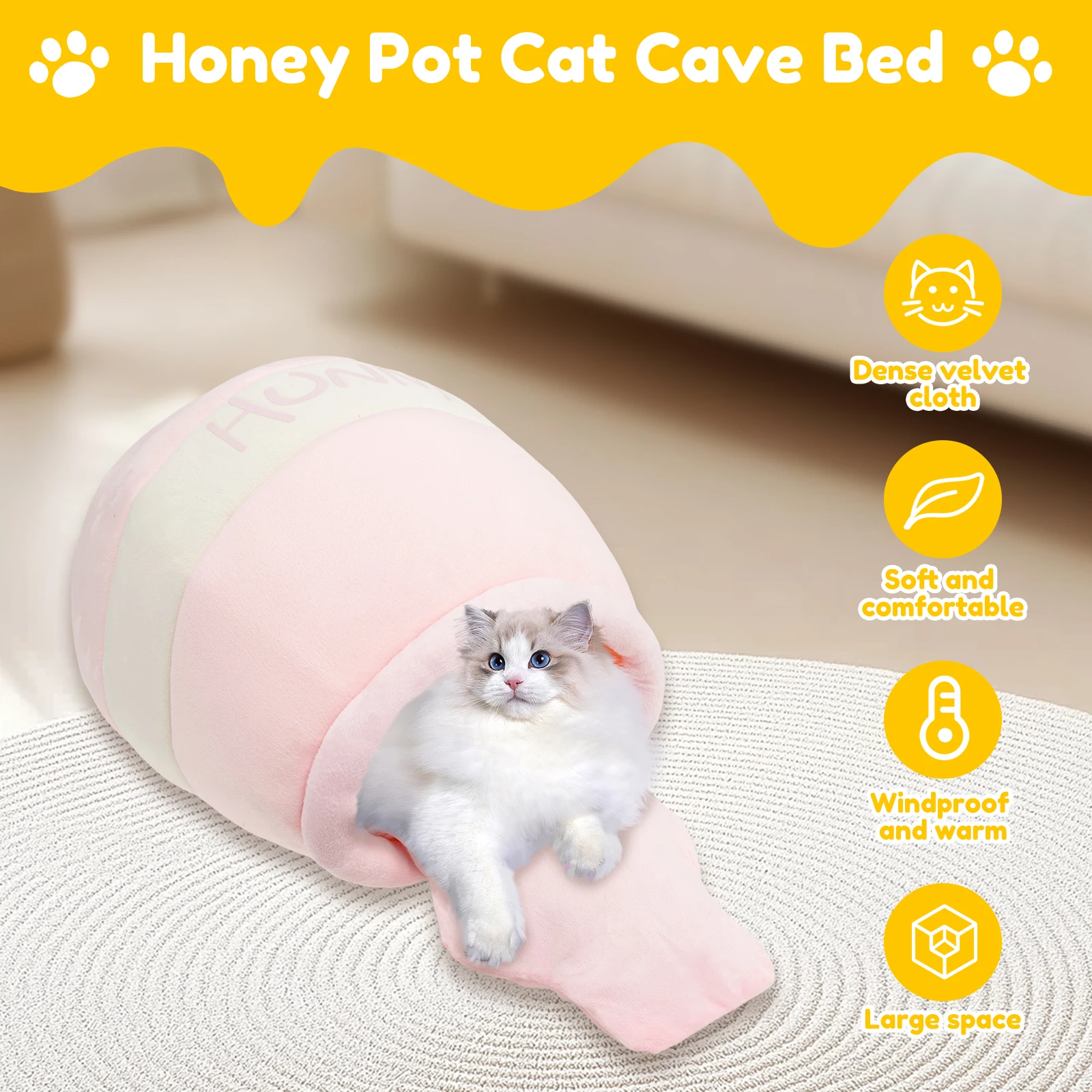 Product Material: Our honey pot cat cave bed is made of plush and filling cotton, which is soft and comfortable and not easy to shed, friendly to pet skin, not easy to tear, and can withstand daily use