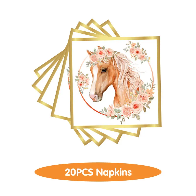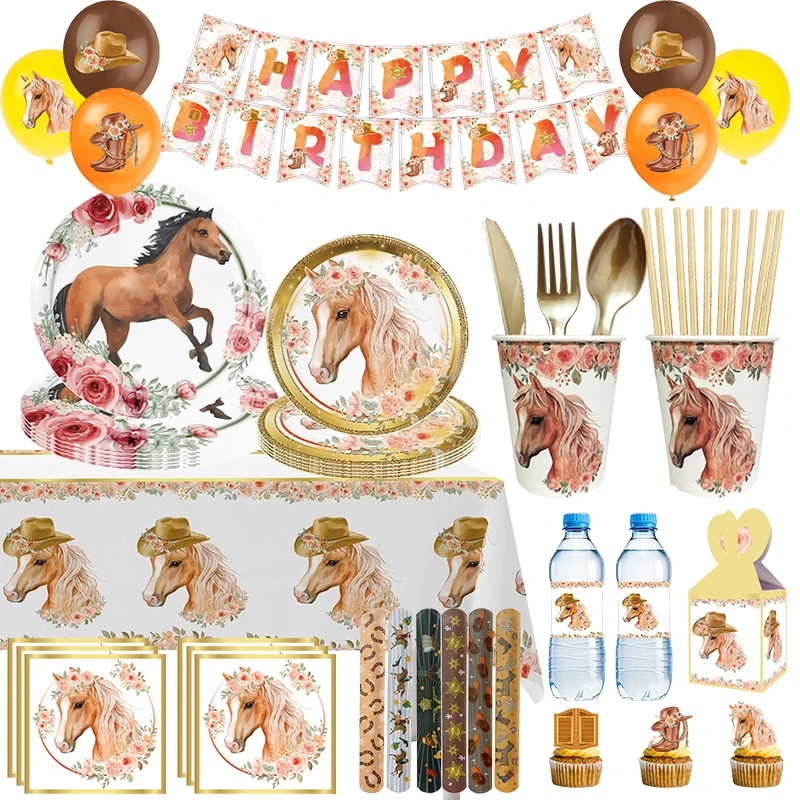 Horse Birthday Party Decoration Horse Theme Tableware Supplies Paper Cups PlatesTablecloth Backdrop Balloons Baby Birthday Gifts