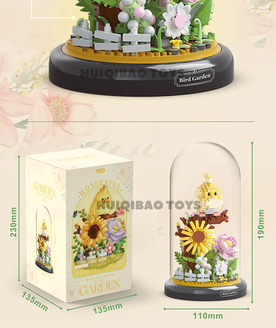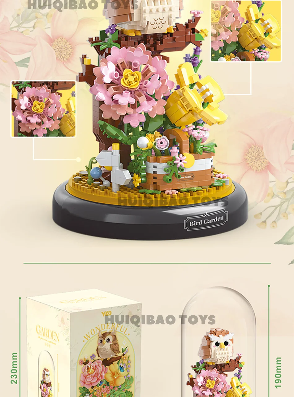 HUIQIBAO Flower Bouquet Dust Cover Panda Set Building Blocks Bonsai Collection C