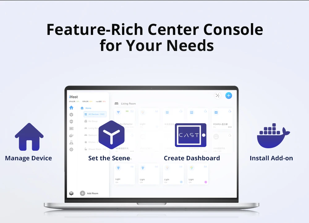 Access the iHost center console through a web browser, where manage devices, set up smart