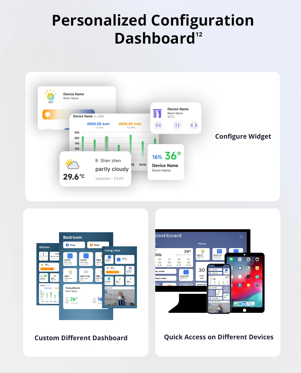 You can configure eWeLink CAST in the central console to create a personalized dashboard. By accessing the dashboard through a browser or the eWeLink CAST app, collectively manage your devices.