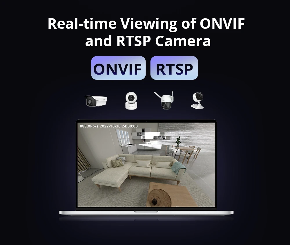 Search and add ONVIF or RTSP cameras within the local network to view surveillance footage at any time on the center console.