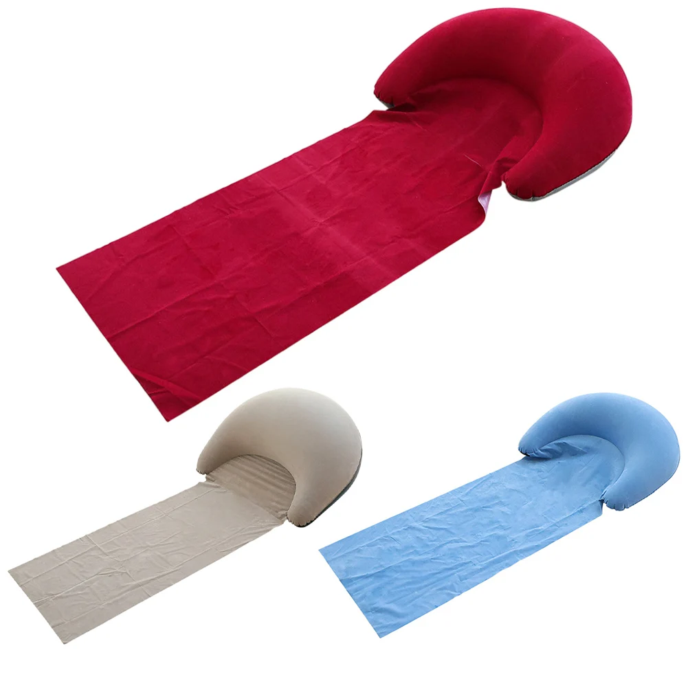 Inflatable Lounger with Head Rest Flocking Air Couch Ergonomic Portable Beach Chair Camping Air Bed for Camping Beach