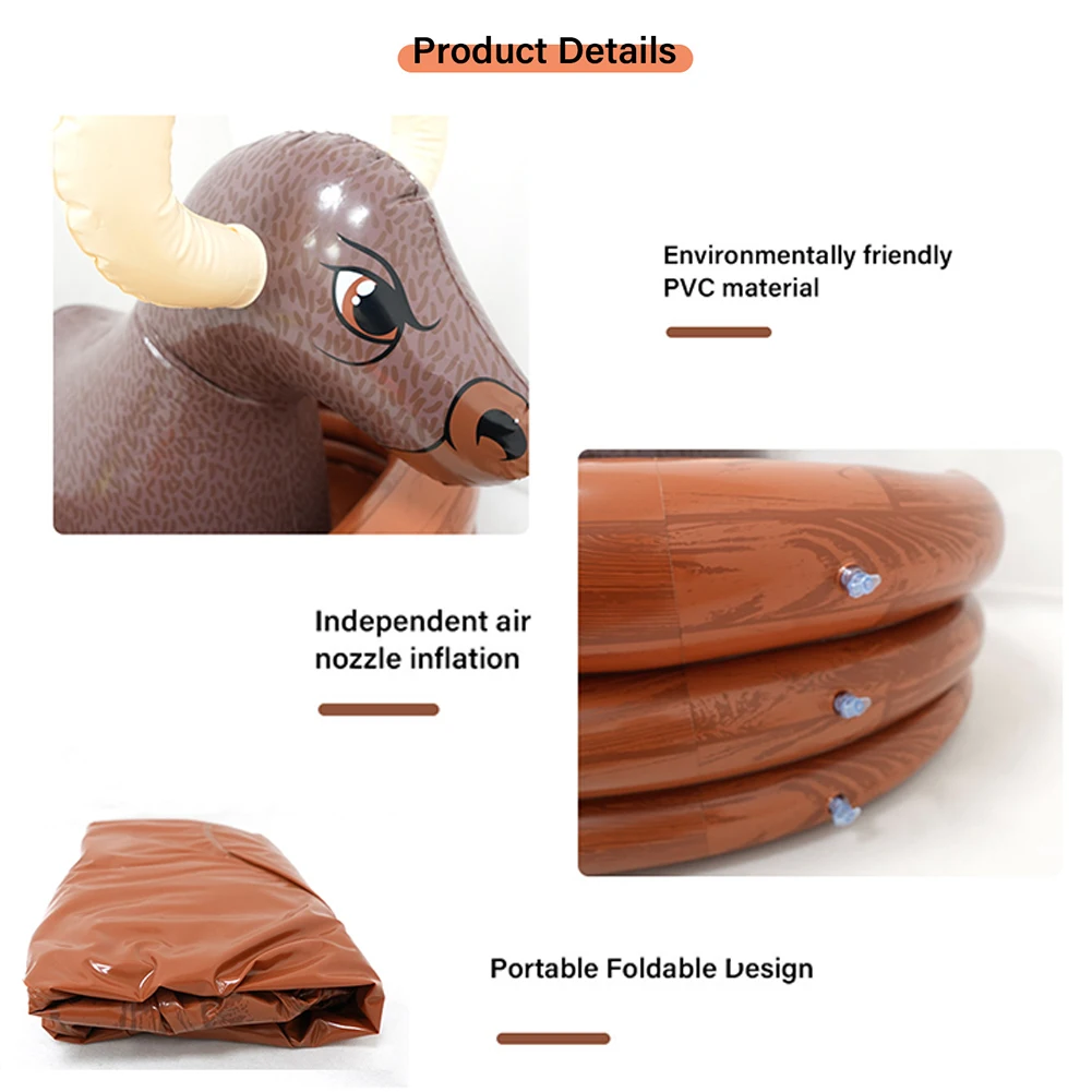 1. Eco-Friendly PVC Material: Crafted from environmentally friendly PVC, this inflatable water bull cooler boasts high flexibility and a thickened design, ensuring it withstands wear and tear. Made with premium rainproof materials, it resists tearing, making it perfect for long-lasting fun.