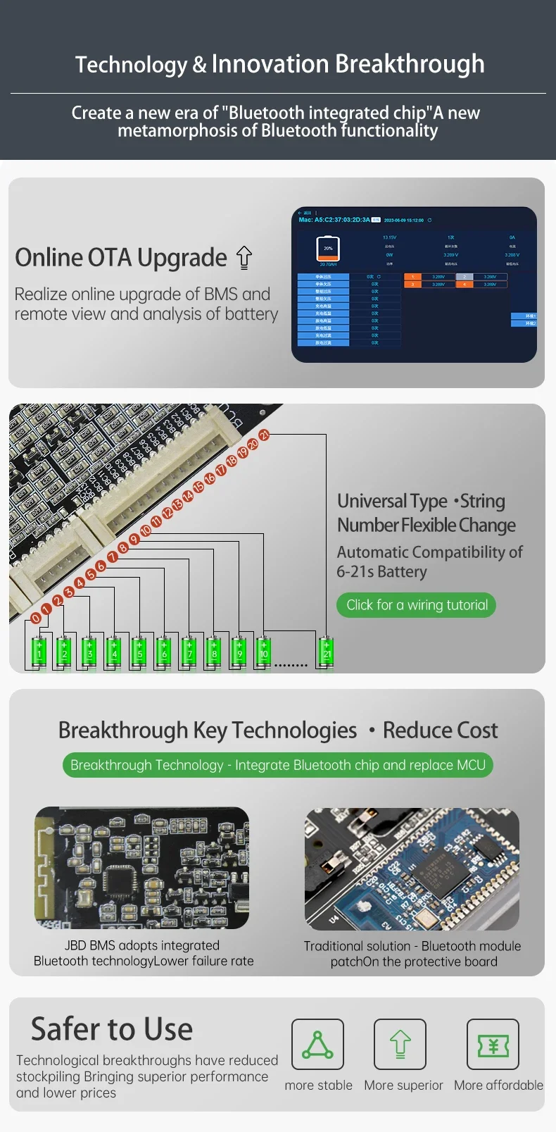 JBD Smart BMS Built-In BT Automatic Identify 8S-21S 100A 120A 150A 200A Lifepo4