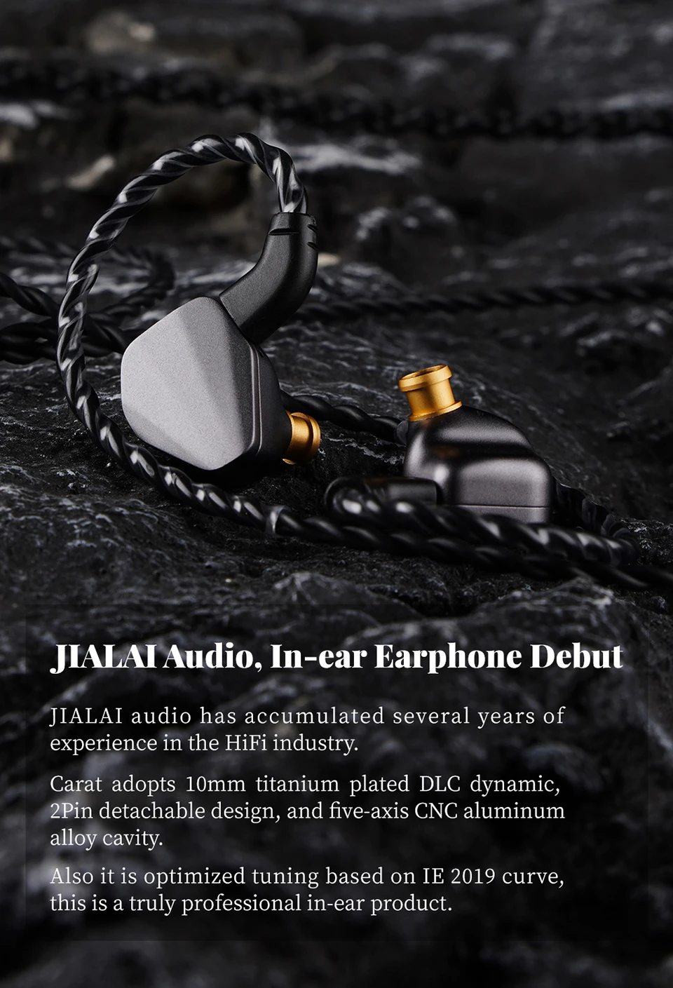 JIALAI Carat Hifi Wired Music Earphone 10Mm Titanium Plated DLC Dynamic Vocal in
