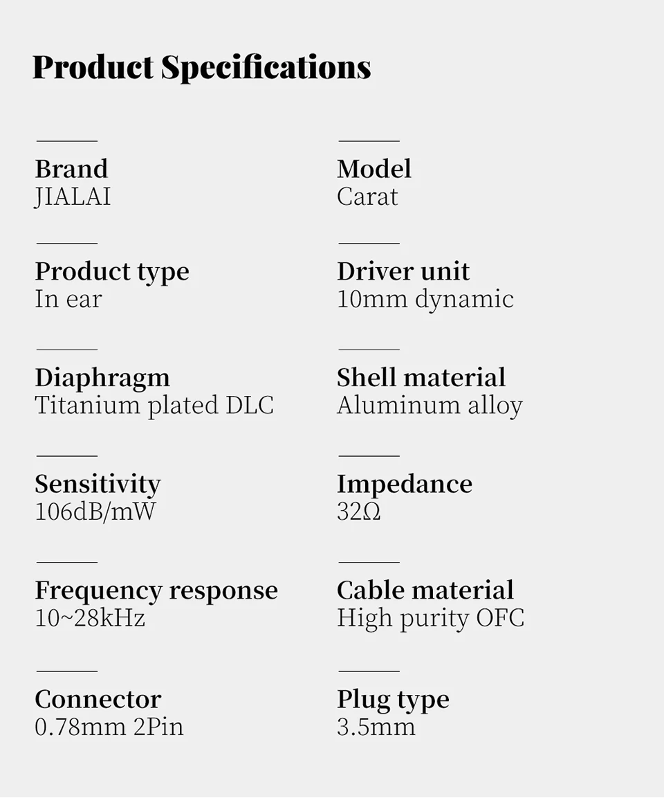 1. Product name: JIALAI Carat 10mm Titanium Plated DLC Dynamic Earphone