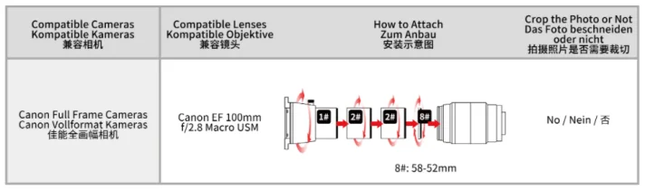 It can be used to photograph 35mm film and is compatible with the following select CAN., NIK., SON., Laowa and OLY. lenses 1: