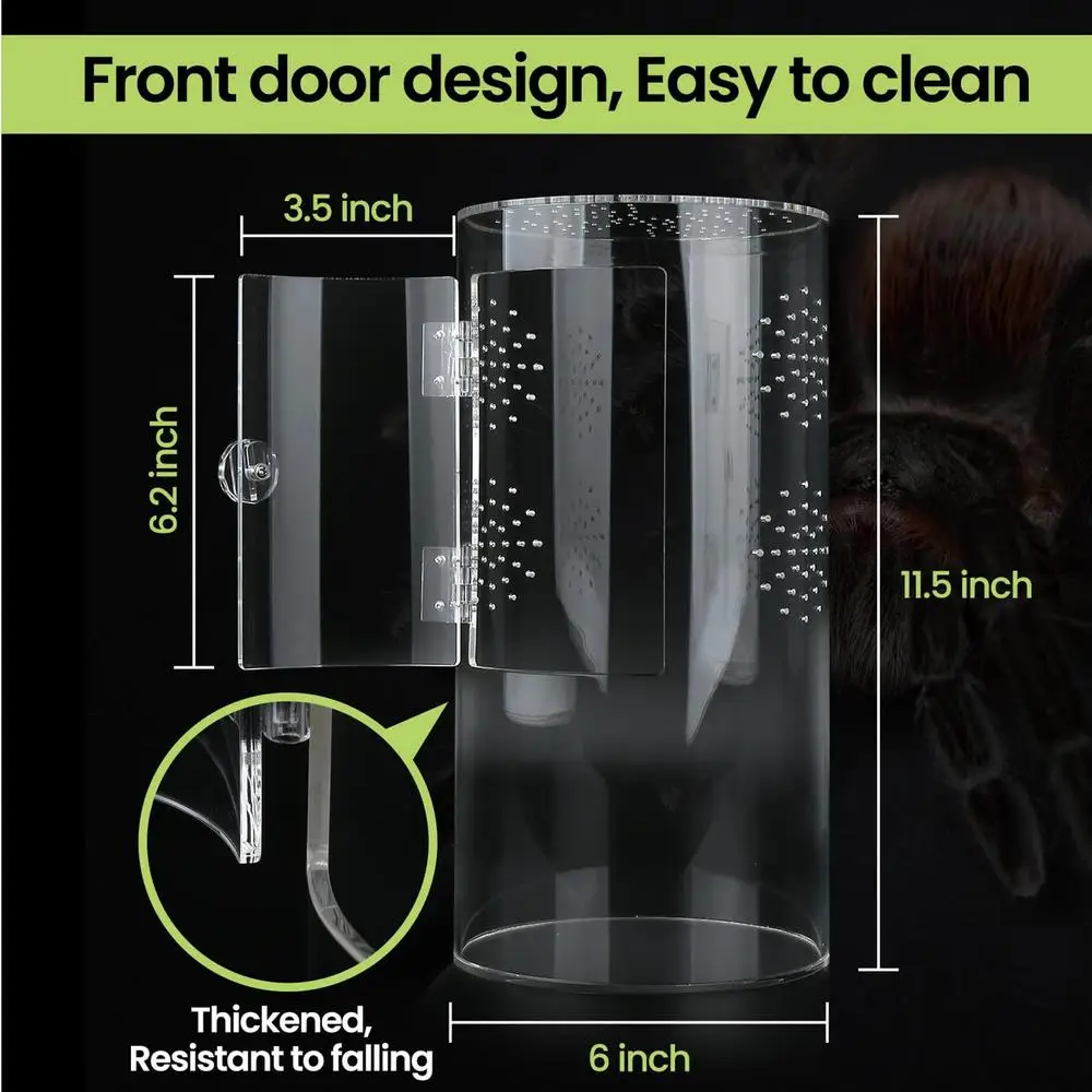 1.Enhanced Vertical Habitat: Offering a generous living area, this enclosure meets the needs of jumping spiders, arboreal spiders, and mantises by providing ample vertical space, fostering healthy growth and ensuring a safe, comfortable environment for your reptile pets
