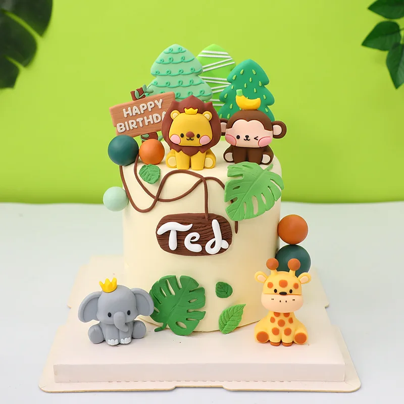 Jungle Forest Animals Cake Toppers Kids 1St Birthday Party Cake Decoration Safar