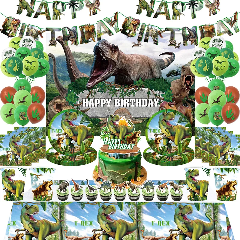Jurassic World Dinosaur birthday Party Decoration Tablecloth Paper Cups Plates Napkins Balloons Banner Kids Favor Party Supplies