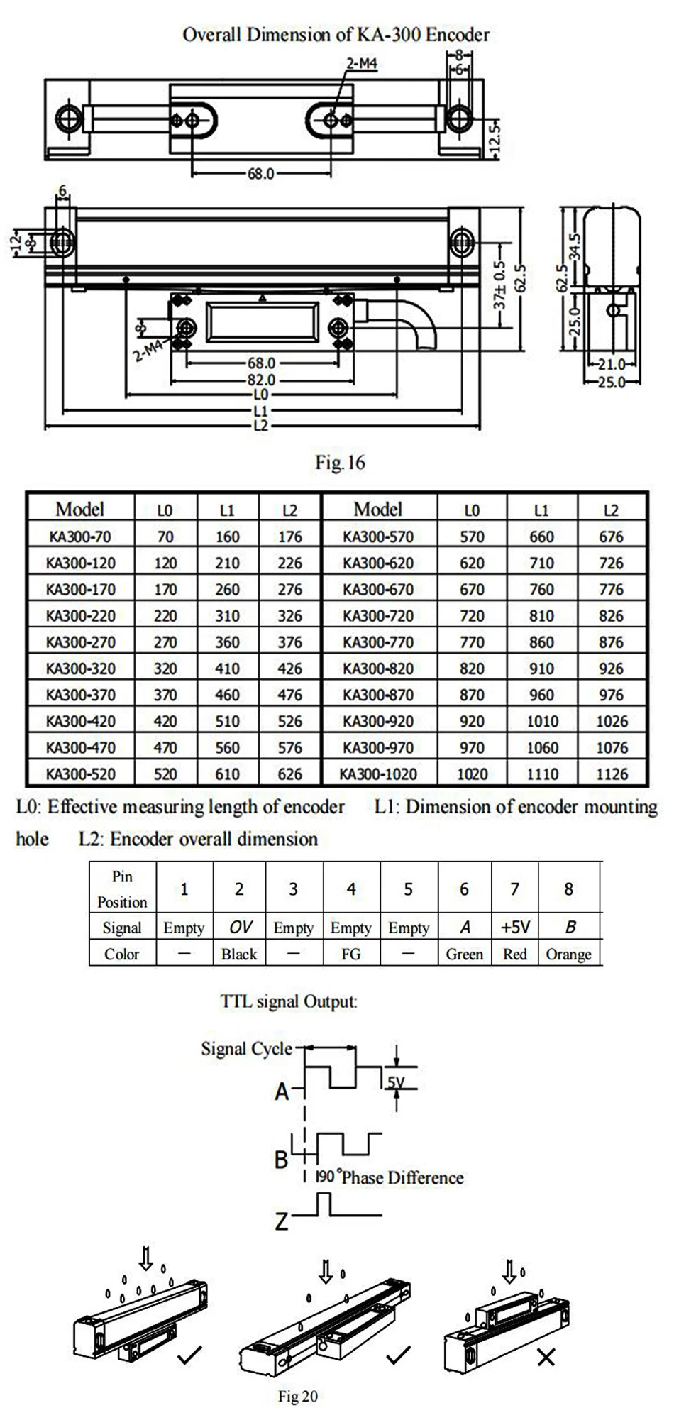 9. KA-300 grating ruler is a kind of grating ruler which is widely used. It has reasonable structure, t he shape design is beautiful, good rigidity, can meet the majority of general machine tool users use, use long Degree in 70~1020mm.