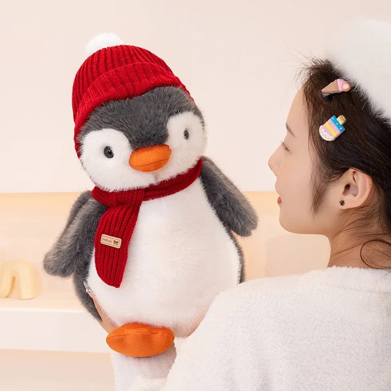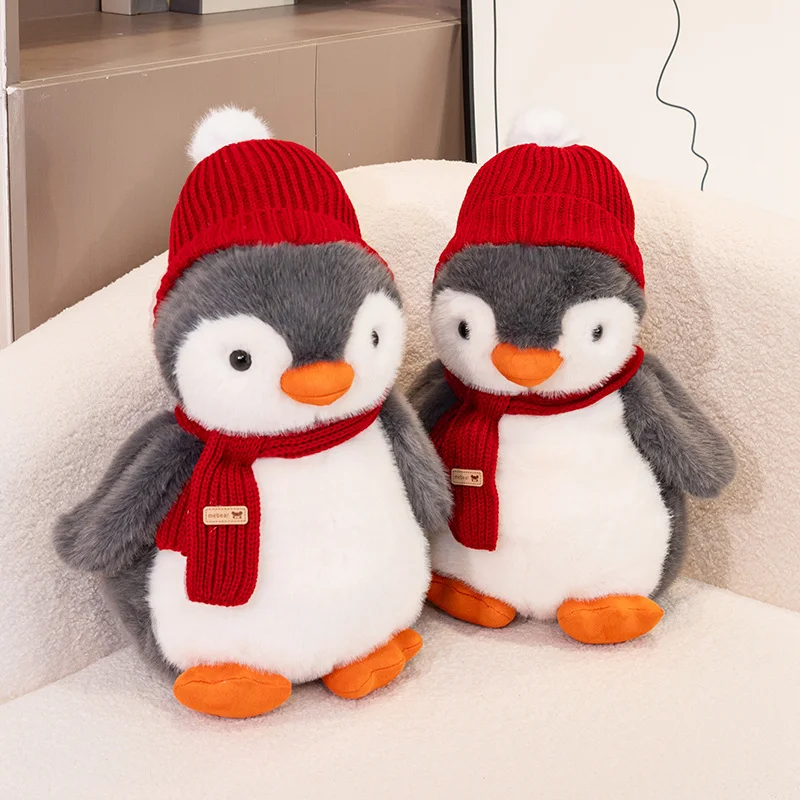 Kawaii High Quality Penguin Plush Doll Animal Stuffed Wearing Hat Scarf Camera Winter Warm Penguin Plush Toy Home Decor Gift