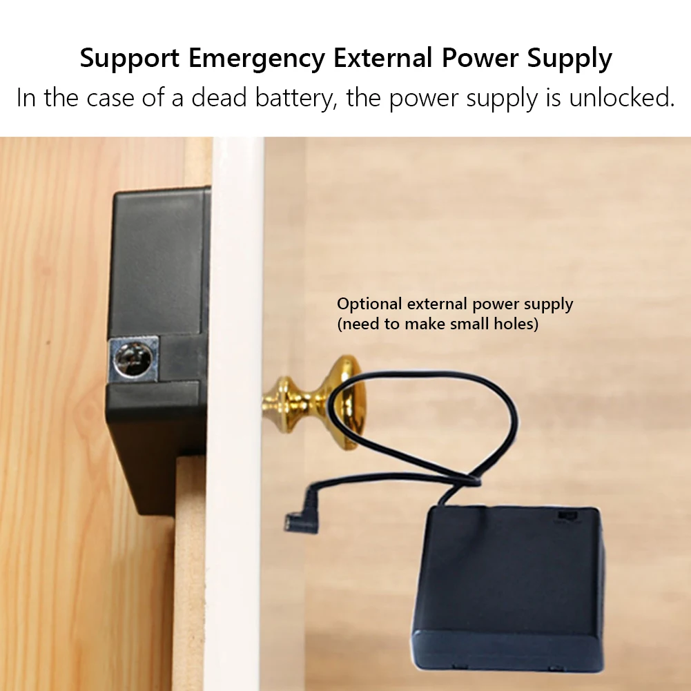 Support the emergency external power supply to unlock the power supply when the battery is dead. Optional external power supply (need to make small holes).