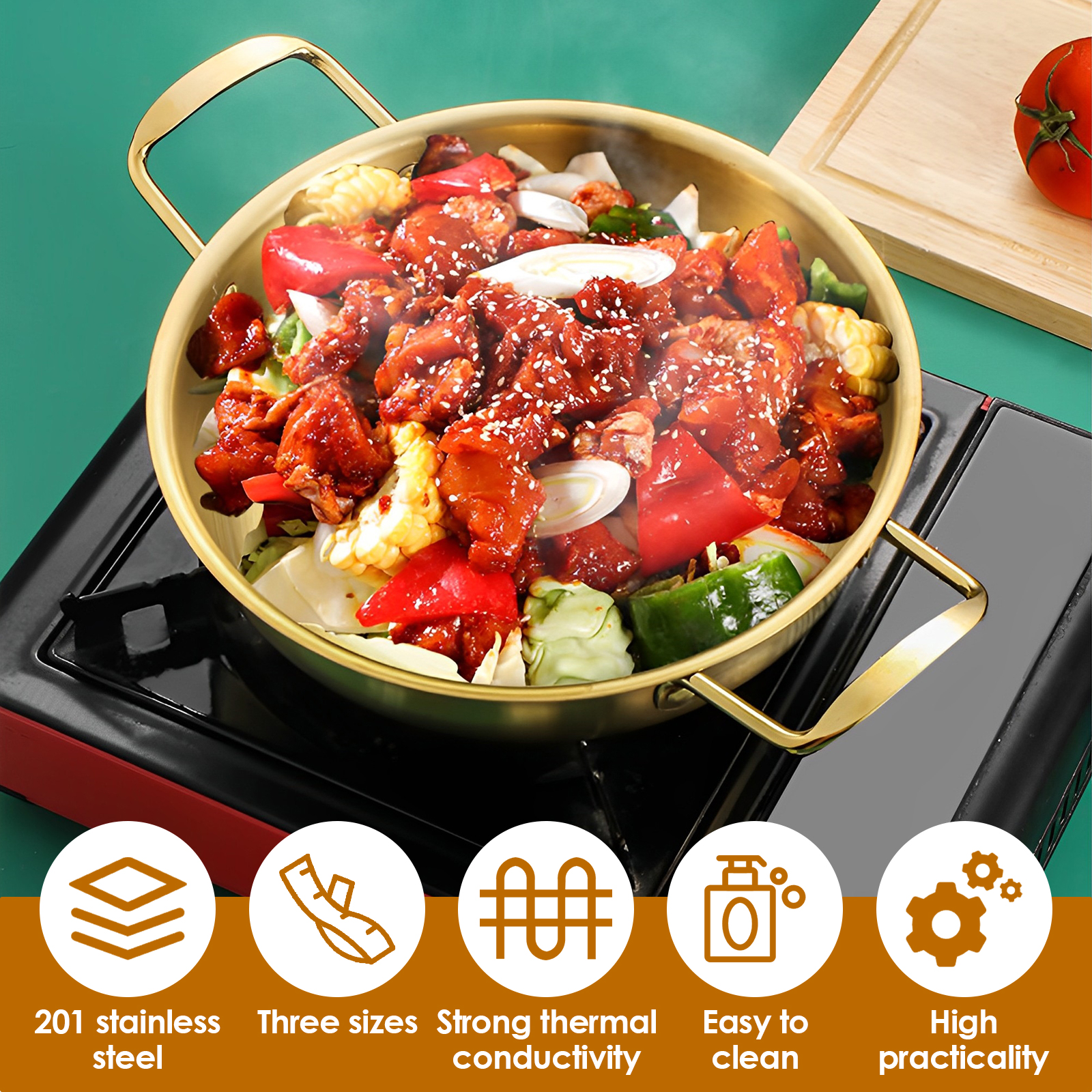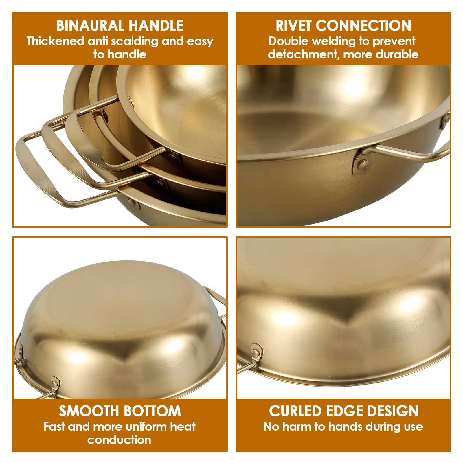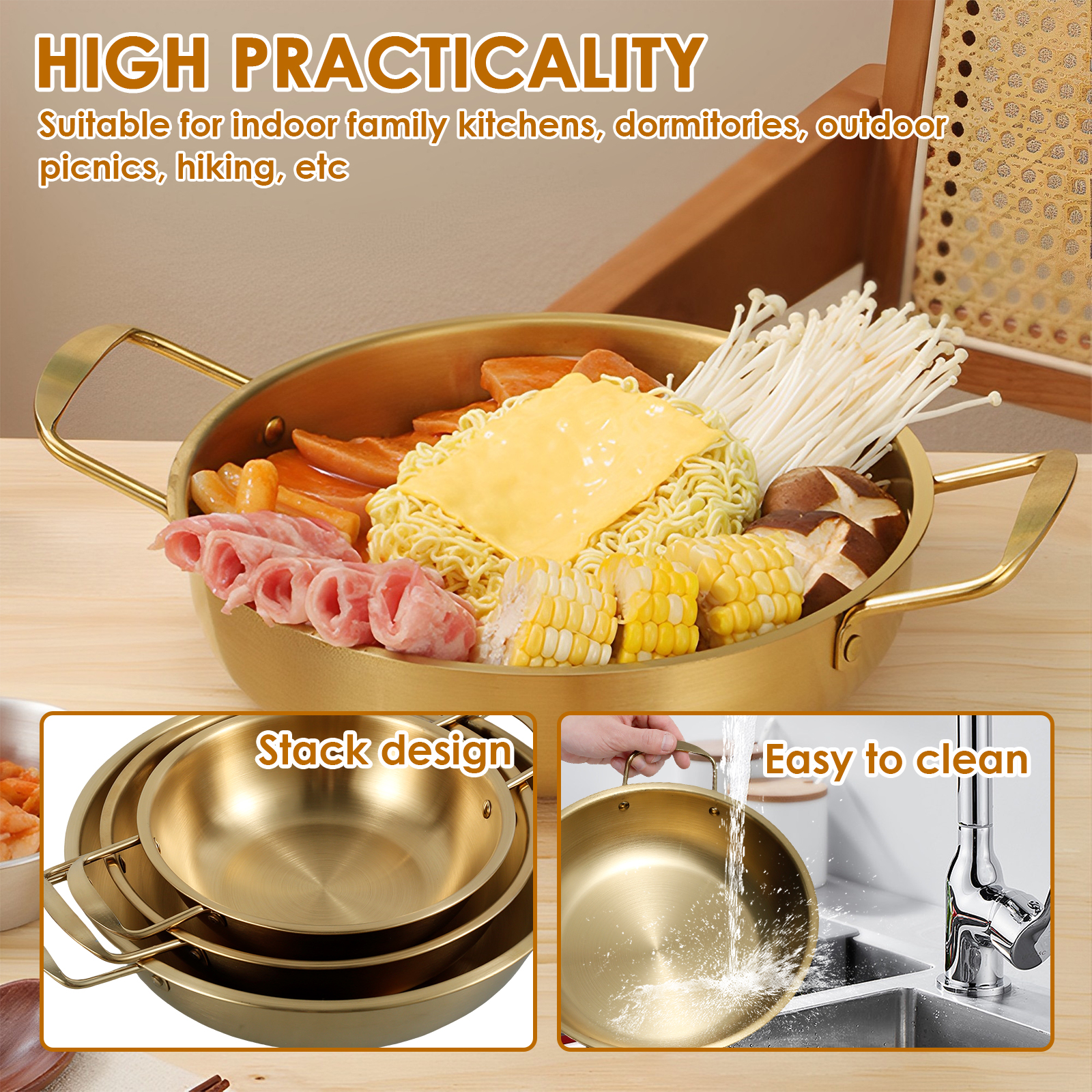 This 3-piece set of korean ramen pans is made of food grade stainless steel, sturdy and durable, not easy to rust.The pan has a flat bottom and conducts heat well, allowing food to heat evenly, perfect for cooking noodles, curry, ramen, spaghetti, soup, porridge, seafood or kimchi.