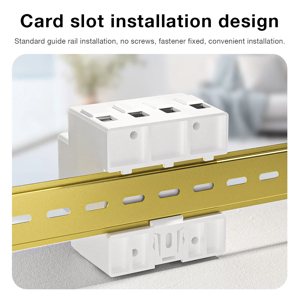 Guide Rail Slot Installation: Standard guide rail installation, no screws, snap-on mounting, convenient and easy to install.