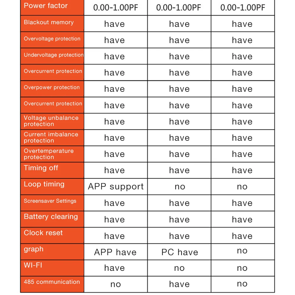 Multi-functional Design: Voltage, current, power, timing, electric energy, temperature, frequency and power factor 8in1 design, convenient for users to understand the use of electric energy, realize the visualization of electricity consumption. And with power-off memory function.