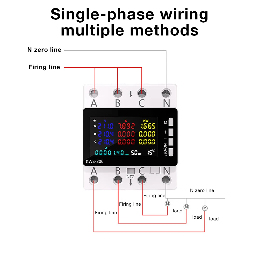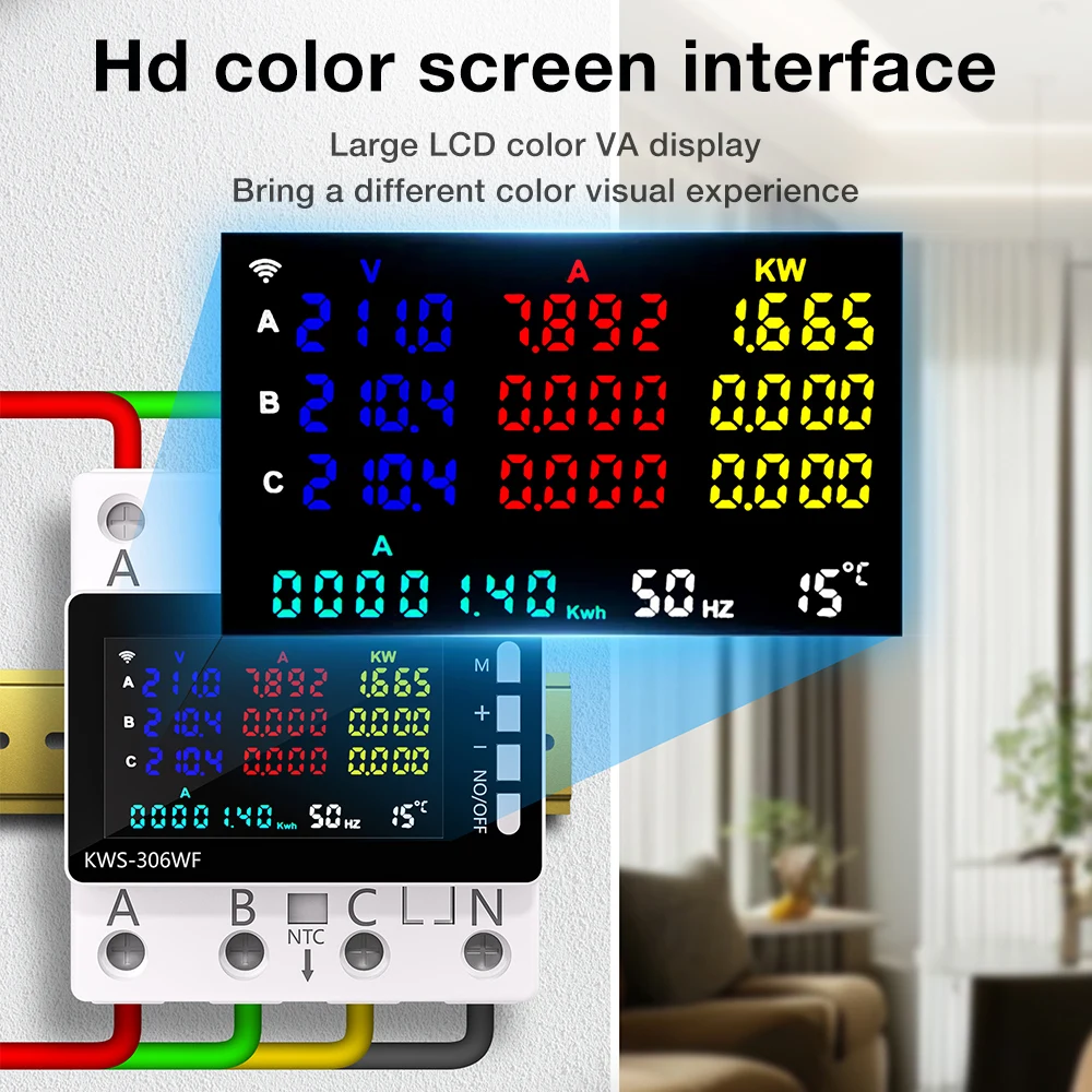 This energy meter has a higher definition interface, more accurate data display, more convenient operation, safer electricity use. Voltage, current, power, timing, electric energy, temperature, frequency and power factor 8in1 design, convenient for users to understand the use of electric energy, realize the visualization of electricity consumption. Standard guide rail installation, suitable for apartments, companies, shopping malls, hotels, family homes, and so on.