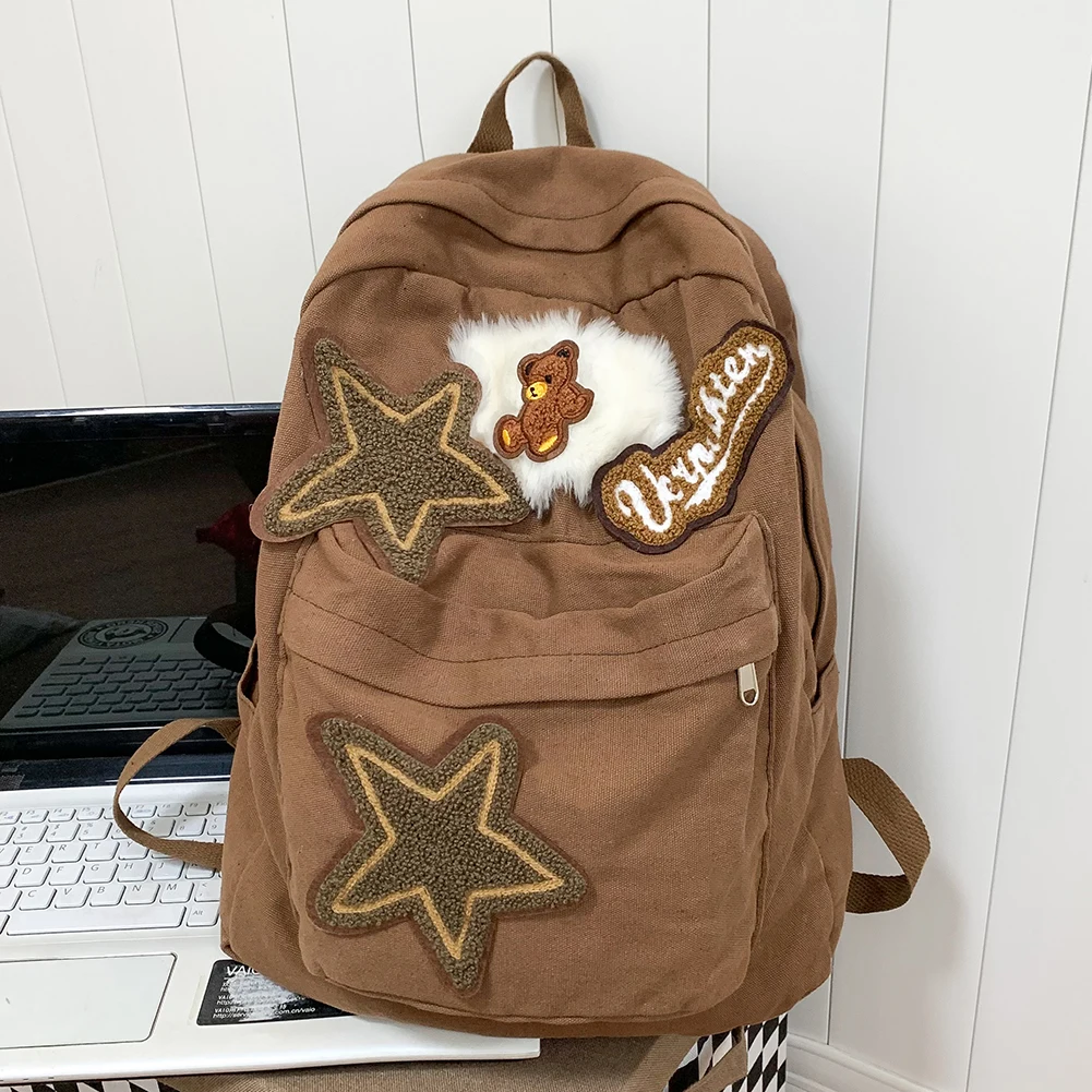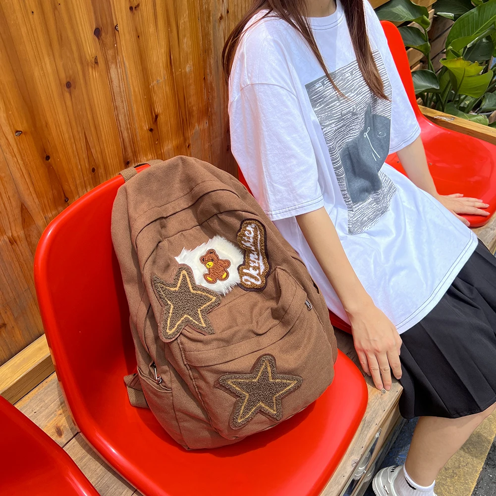 1.Original Star Y2K Design: Stand out with our unique Original Star Y2K canvas backpack featuring a vintage teddy bear. Embrace the nostalgia of the millennium era while showcasing your individuality.Make a fashion statement with our Original Star Y2K canvas backpack. This one-of-a-kind design captures the essence of the millennium era and features a charming vintage teddy bear motif. Express your individuality and embrace the nostalgic vibes with this eye-catching backpack.