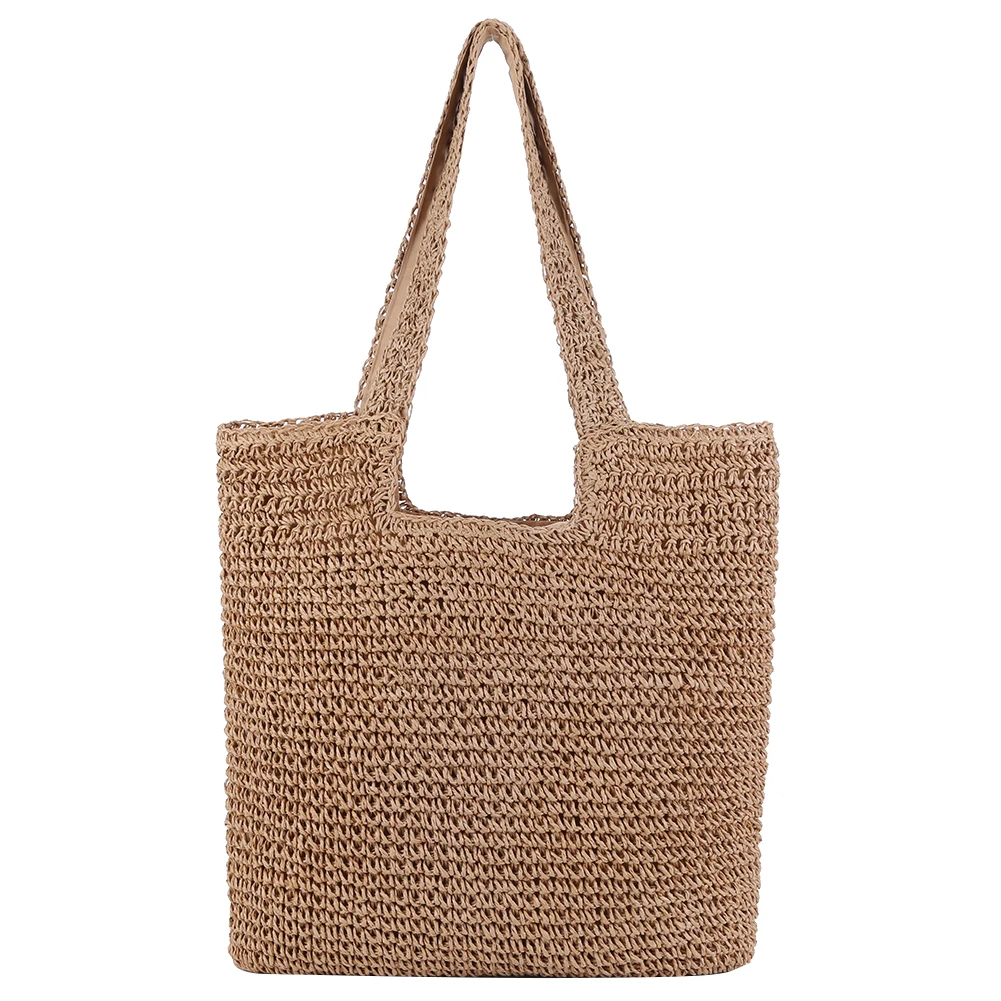 2. Large Capacity: Measuring 15.75'' x 12.6'' (L x H), ladies woven tote bag has ample space to hold your wallet, A4 magazines, cell phone, sunglasses, makeup, flip flops, and more. It also features a small compartment inside to store your cards, cash, or other small items.