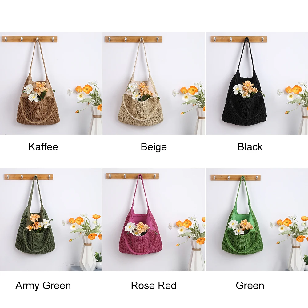 Specification: Origin: Mainland China Shape: Casual Tote Main Material: paper rope Handbags Type: Shoulder Bags Lining Material: Polyester Number of Handles/Straps: two Decoration: NONE Style: Fashion Department: Women Pattern Type: Solid Closure Type: zipper Hardness: SOFT Interior: No Pocket Exterior: NONE Model Number: Shoulder Bag Occasion: Versatile Size: The bag is approximately 40cm/15.75in long, 32cm/12.60in tall, and the total height of the bag is approximately 60cm/23.62in
