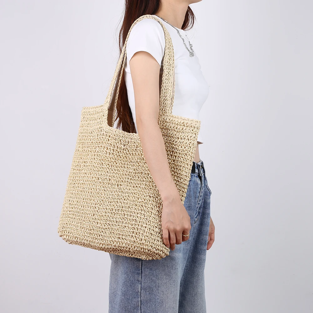 Hand-Woven Handbags Summer Ladies Woven Bag Large Capacity Paper Rope Handmade Fashion Simple Casual Casual Tote Purses
