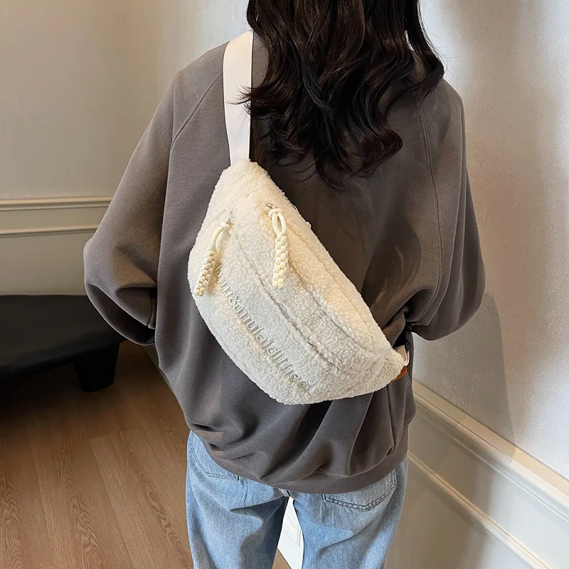 Lambswool Fanny Pack Women'S Fleece Sherpa Waist Pouch Large Capacity Furry Cros