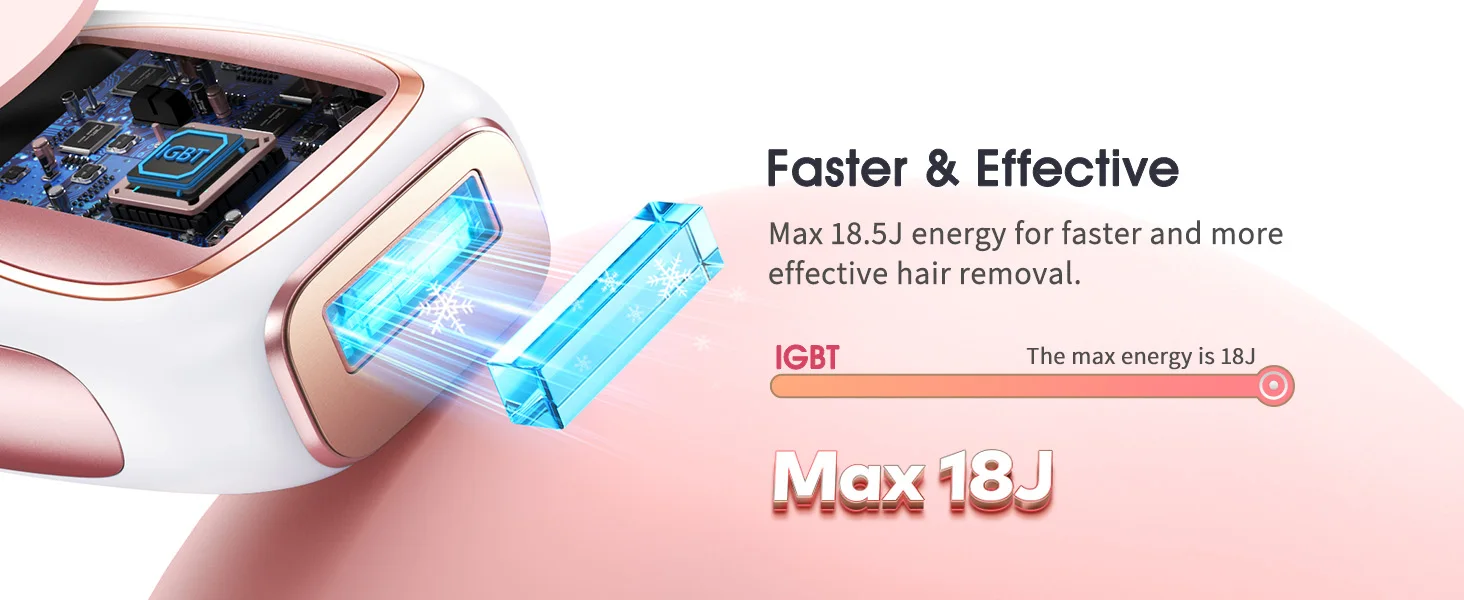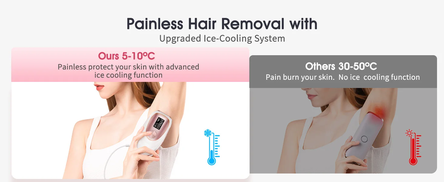 Painless Laser Hair RemovalWith JOOYEE latest IPL and ice cooling technology, say goodbye to the painful and expensive traditional hair removal methods. It can keep the flash head at 5-10 to cool down your skin, minimises pain during hair removal.