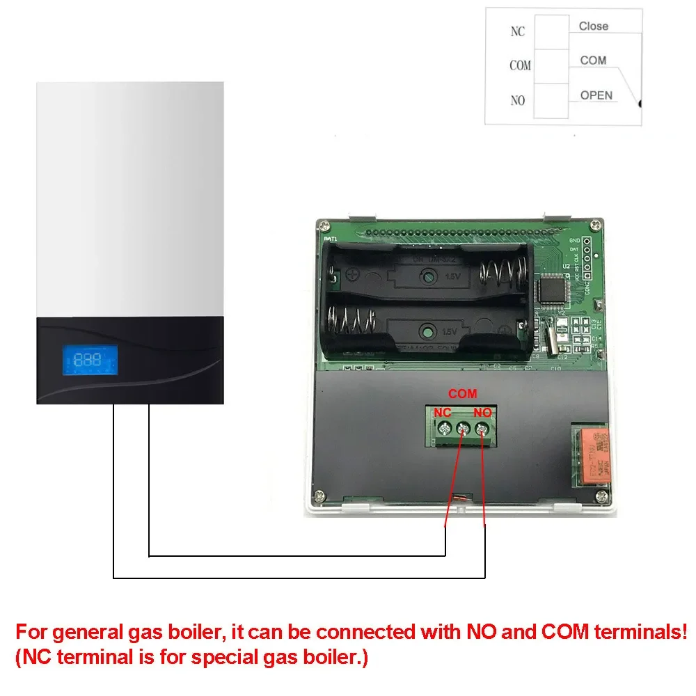 5. When the actual room temperature is higher than the set temperature, the thermostat controls the boiler to stop working.