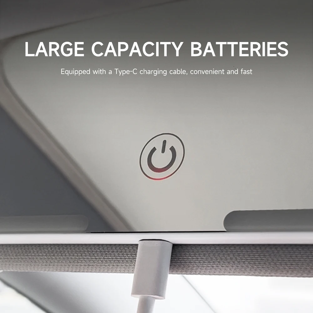 4. Large Capacity Battery with USB Charging: The auto interior makeup mirror comes with a large capacity battery and a USB charging cable, making it convenient and quick to charge.