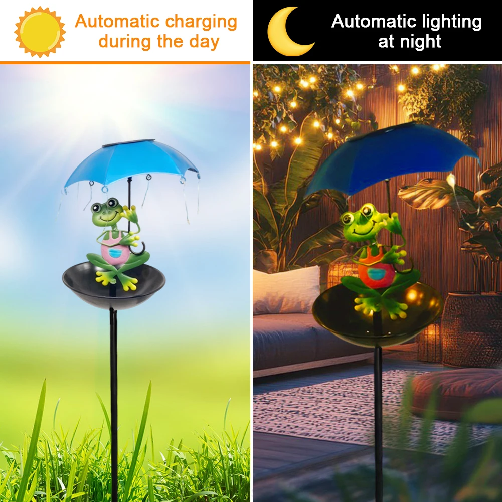 2.Multifunctional Design: The unique metal animal lawn light combines an iron art umbrella design with a plate and stake hook for dual functionality as a bird feeder. Enhance your garden by attracting birds and adding life to your space.