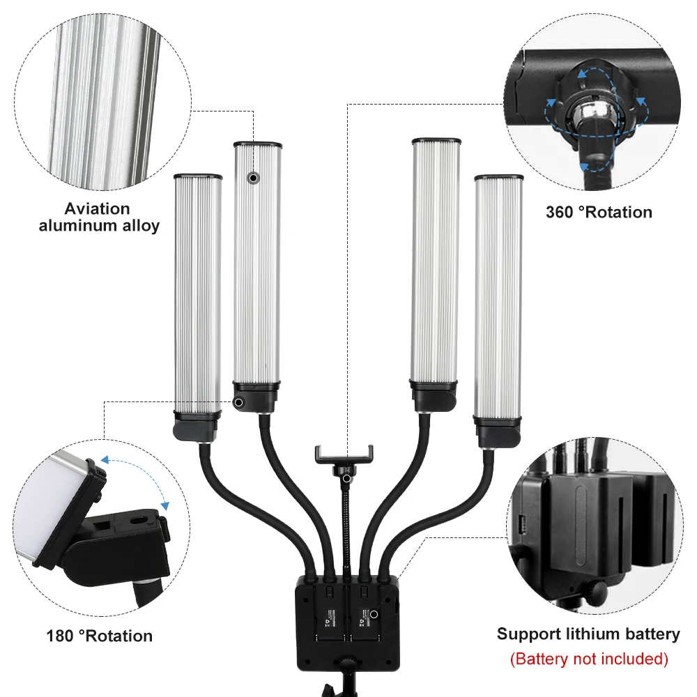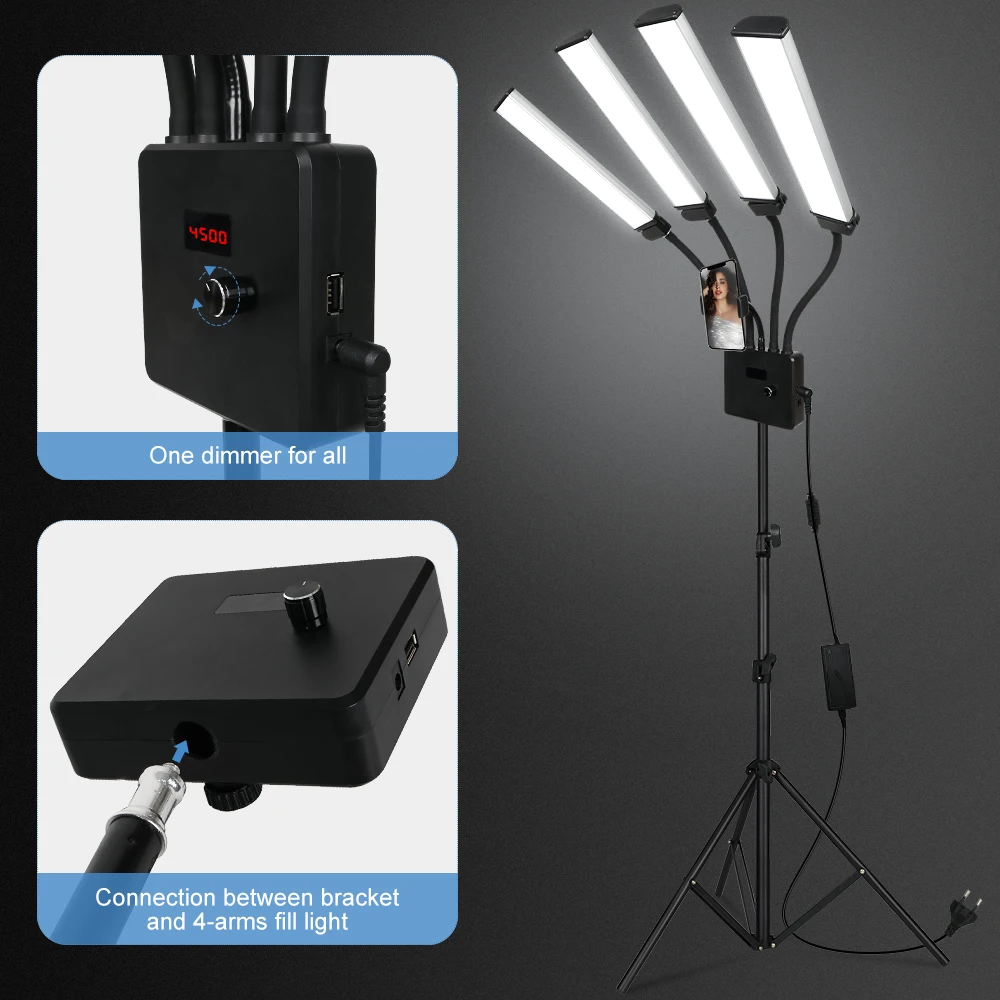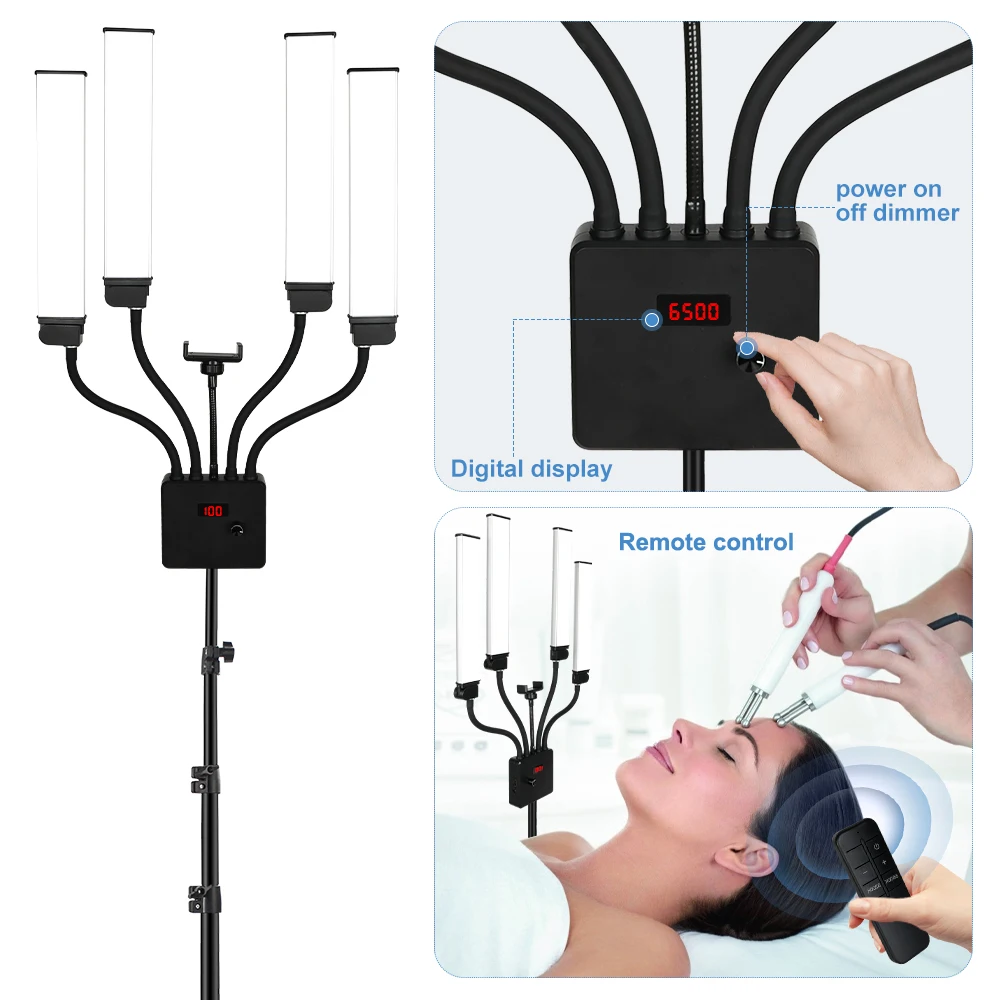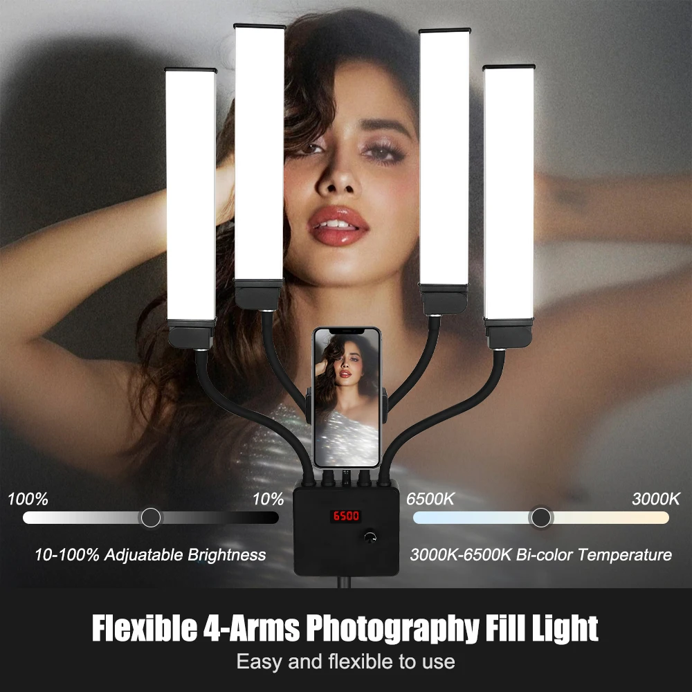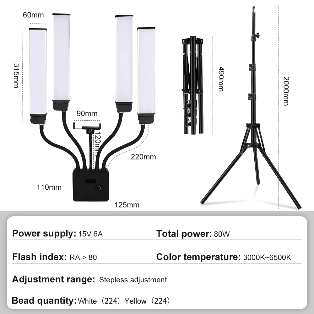 LED Video Light 80W Four Arm Beauty Light with Adjustable Tripod Dimmable 3000-6
