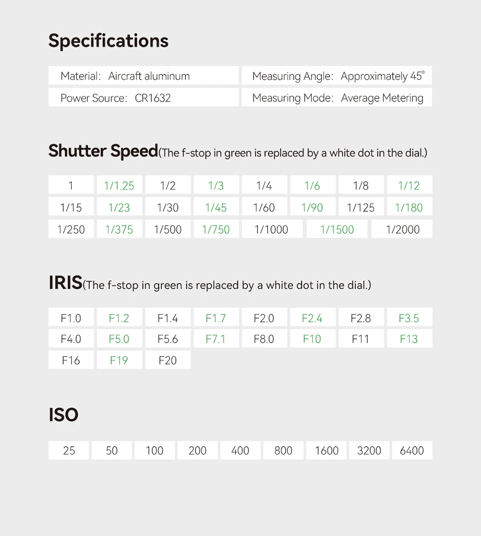 Light Meter II 23-Stop Shutter Speed for Photography Studio Double Power Saving