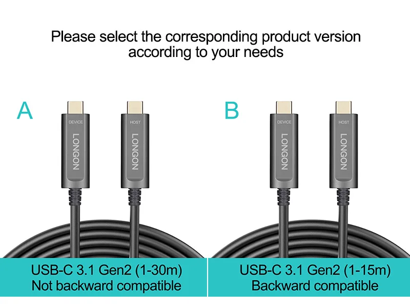 LONGON AOC USB 3.1 Type C is the outstanding Gen2 active optical cable in the market . Super speed data transmission depending on optical fiber , not only its support length become much longer up to 30m max, but also signal quality is much more stable , no EMI completely, especially can support 10Gbps super speed , meets USB 3.1 gen2 standard . It is a mature & competitive solution in the high speed date transmission market . This optical fiber cable can be applied to computer with USB type C interface , Wearable tech ,Cameras , Display , Projectors among them , used for DATA transmission.